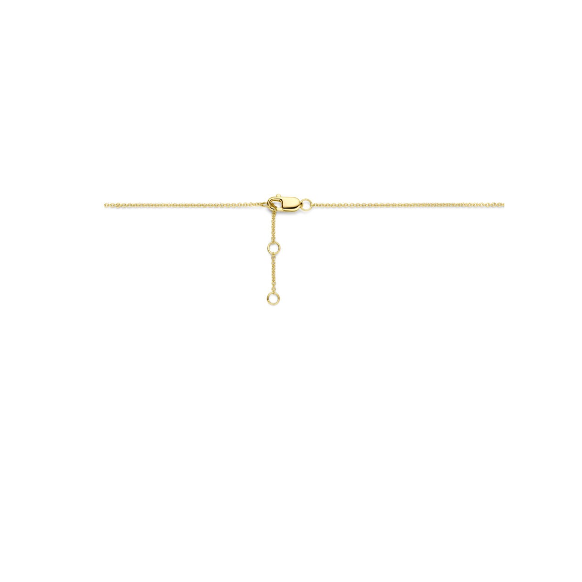Het collier is uitgevoerd met een fijne anker schakel en verstelbare draaglengtes van 41 tot 43,5 cm, zodat het altijd perfect valt. De combinatie van warm geelgoud en transparante diamant maakt dit sieraad een tijdloos cadeau – perfect voor Valentijn of een ander bijzonder moment.