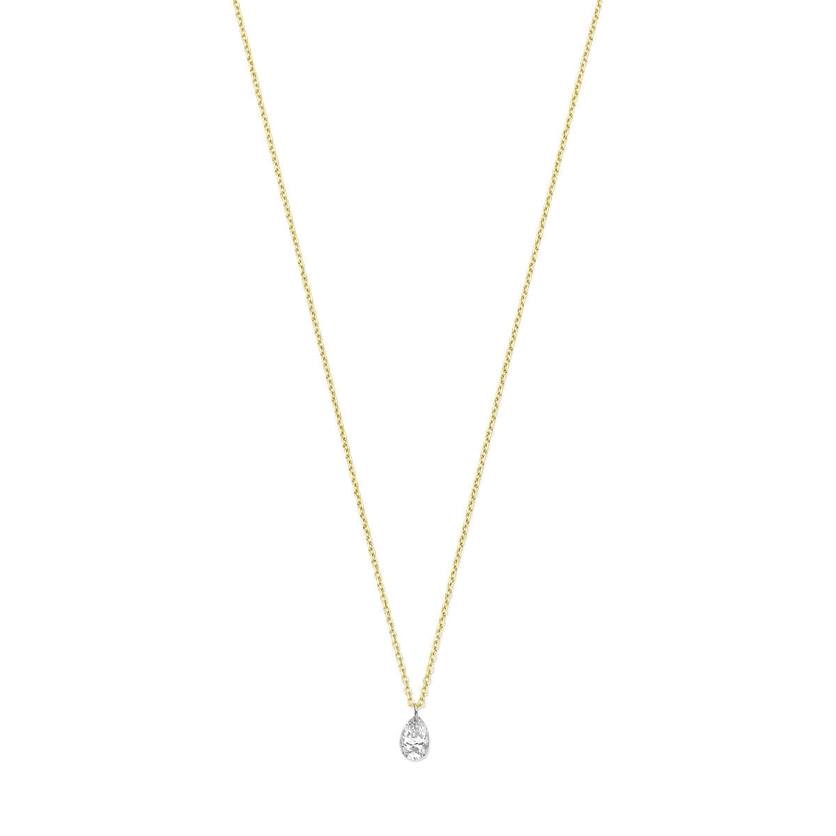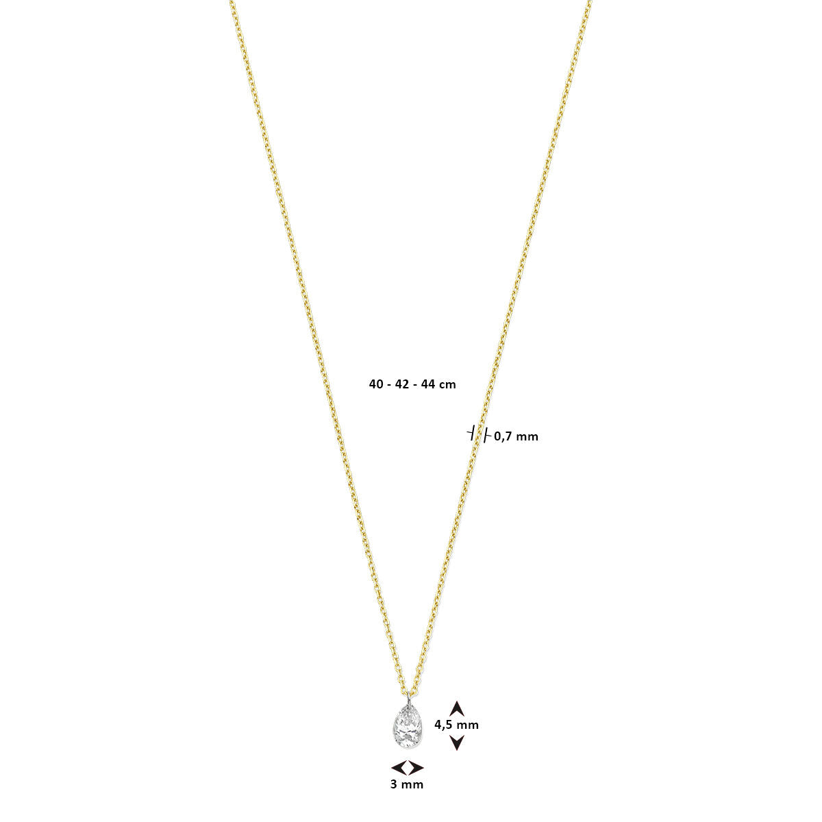 Ervaar de weelde van tijdloze elegantie met dit exclusieve 18k geelgouden collier van Van der Kooij, een waar pronkstuk voor elke vrouw. De schitterende 0.15 ct peer-vormige diamant voegt een vleugje luxe toe aan elke outfit, waardoor je straalt bij elke gelegenheid.