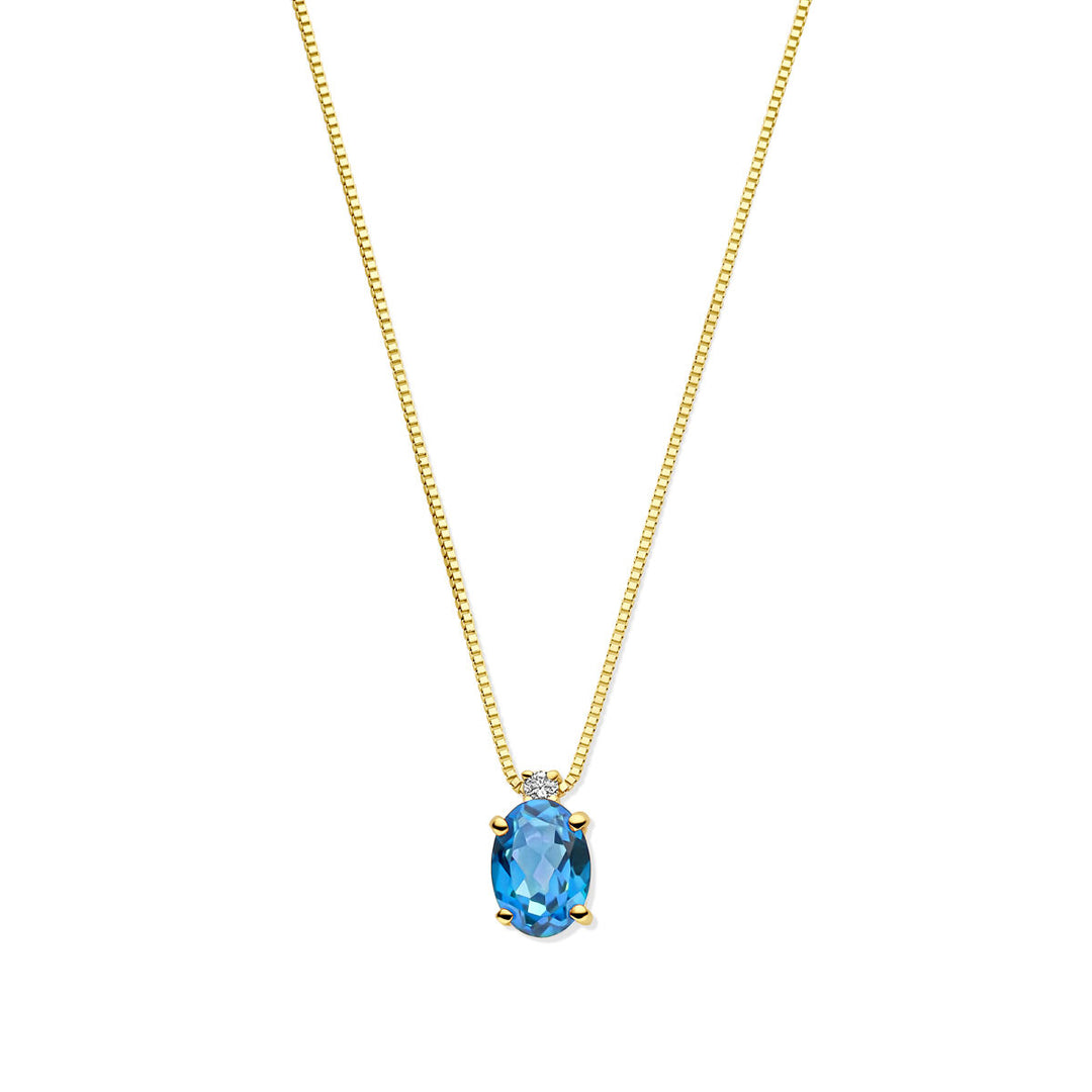 14k Geelgouden collier met London Blue topaas en diamant
