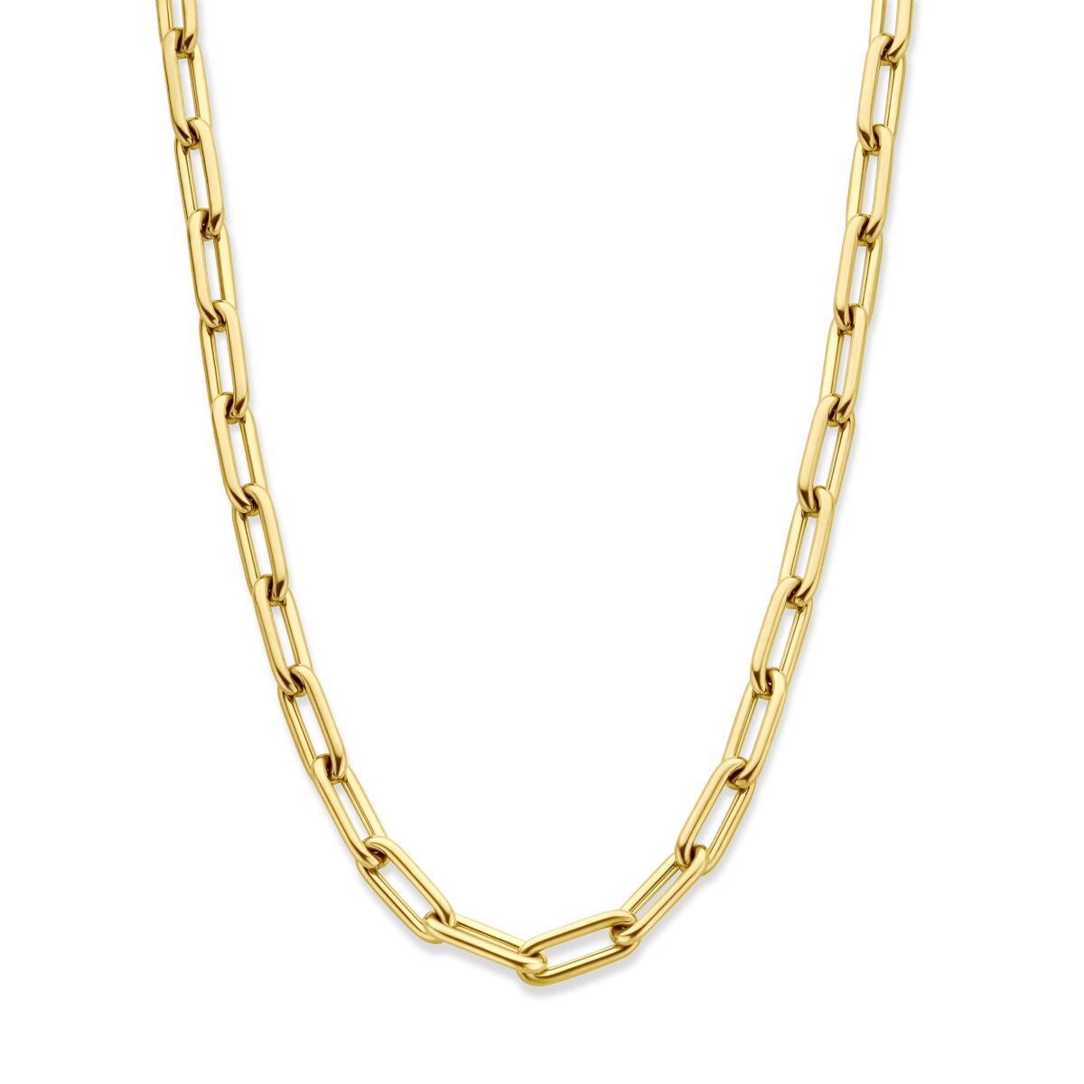 Dit moderne stalen dames collier is een krachtig sieraad met een elegante uitstraling. Het collier is vervaardigd uit hoogwaardig edelstaal en voorzien van een goudkleurige ion plating, die zorgt voor een warme, luxe glans én langdurige kleurbescherming. De robuuste anker schakel van 8 mm breed geeft het ontwerp een stoere, maar vrouwelijke uitstraling – perfect voor een statement look.