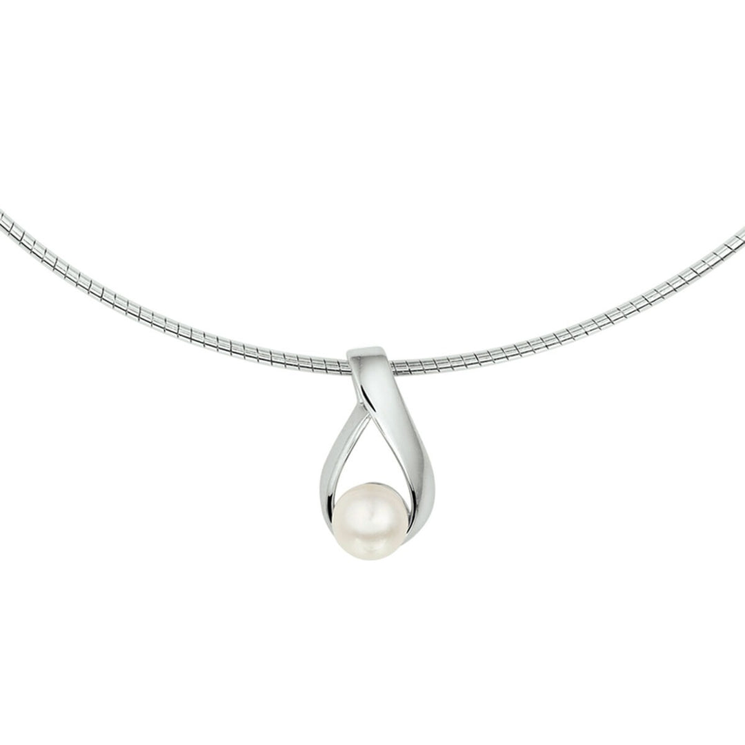 y-collier parel 45 + 5 cm zilver gerhodineerd