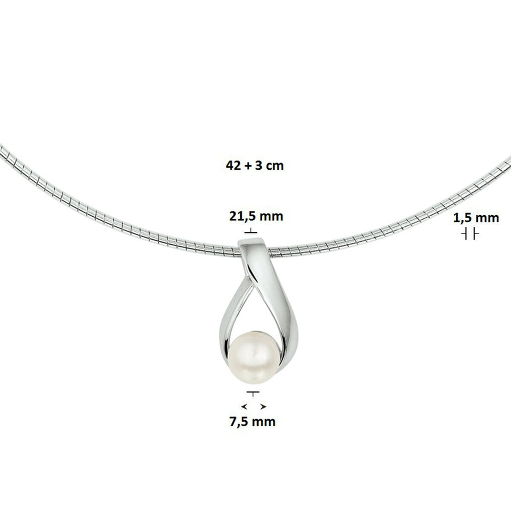 collier parel 5,5 mm 42 + 4 cm zilver gerhodineerd