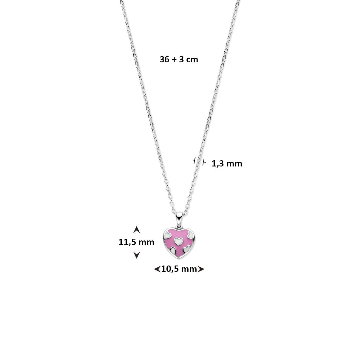 Een verfijnd sieraad vol betekenis: dit gerhodineerd 925 zilveren collier is speciaal ontworpen voor jonge harten. Het middelpunt van het collier wordt gevormd door een sierlijk hartje in zilver-, wit- en zachtroze tinten, dat liefde en verbondenheid symboliseert. Dankzij het verstelbare anker-schakelontwerp (36–39 cm) sluit de ketting perfect aan op ieder kindernekje, ideaal voor dagelijks gebruik of als bijzonder gebaar voor Valentijnsdag. De duurzame rhodiumlaag geeft het collier een prachtige glans én extra bescherming tegen slijtage. De stevige karabijnsluiting zorgt voor een veilige en comfortabele pasvorm.