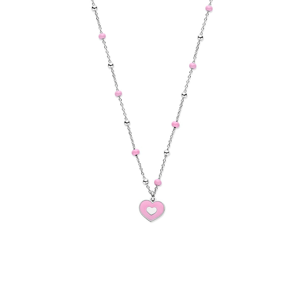 Een verfijnd sieraad vol liefde: deze gerhodineerd 925 zilveren ketting met hartje is een prachtig geschenk voor een bijzonder moment. Het collier is ontworpen voor kinderen en straalt tederheid en elegantie uit. De subtiele combinatie van zilverkleurige bolletjes en staafjes geeft het sieraad een speelse maar stijlvolle uitstraling, terwijl het roze hartje symbool staat voor genegenheid en verbondenheid.