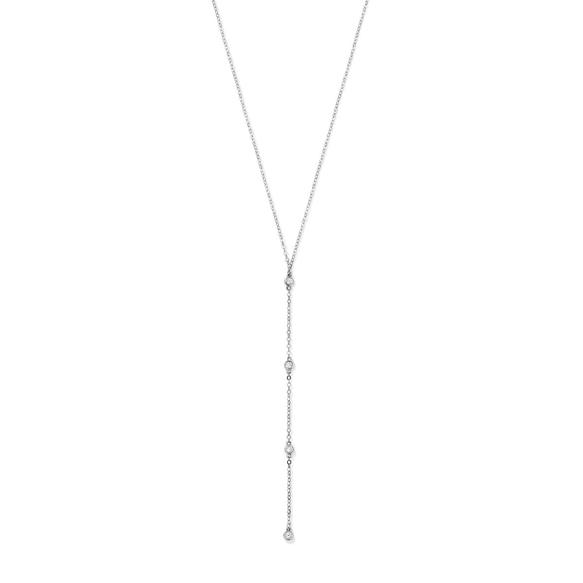 Dit verfijnde gerhodineerd zilveren Y-collier is een stijlvol sieraad dat subtiel opvalt door zijn elegante vorm en sprankelende details. Het collier is uitgevoerd met een briljantgeslepen, transparante zirkonia in solitaire zetting, die prachtig naar beneden valt in het Y-ontwerp – een silhouet dat de halslijn op elegante wijze accentueert.