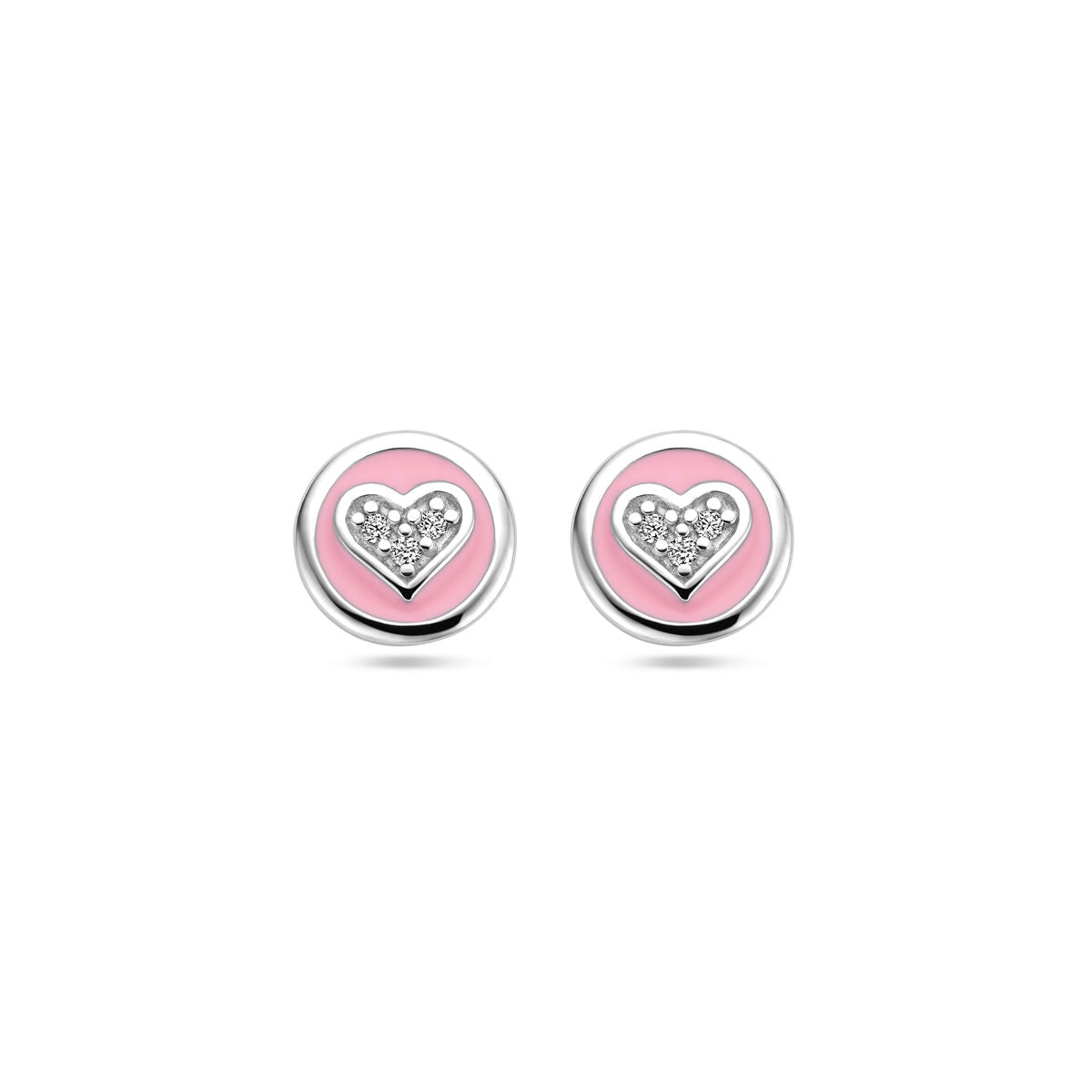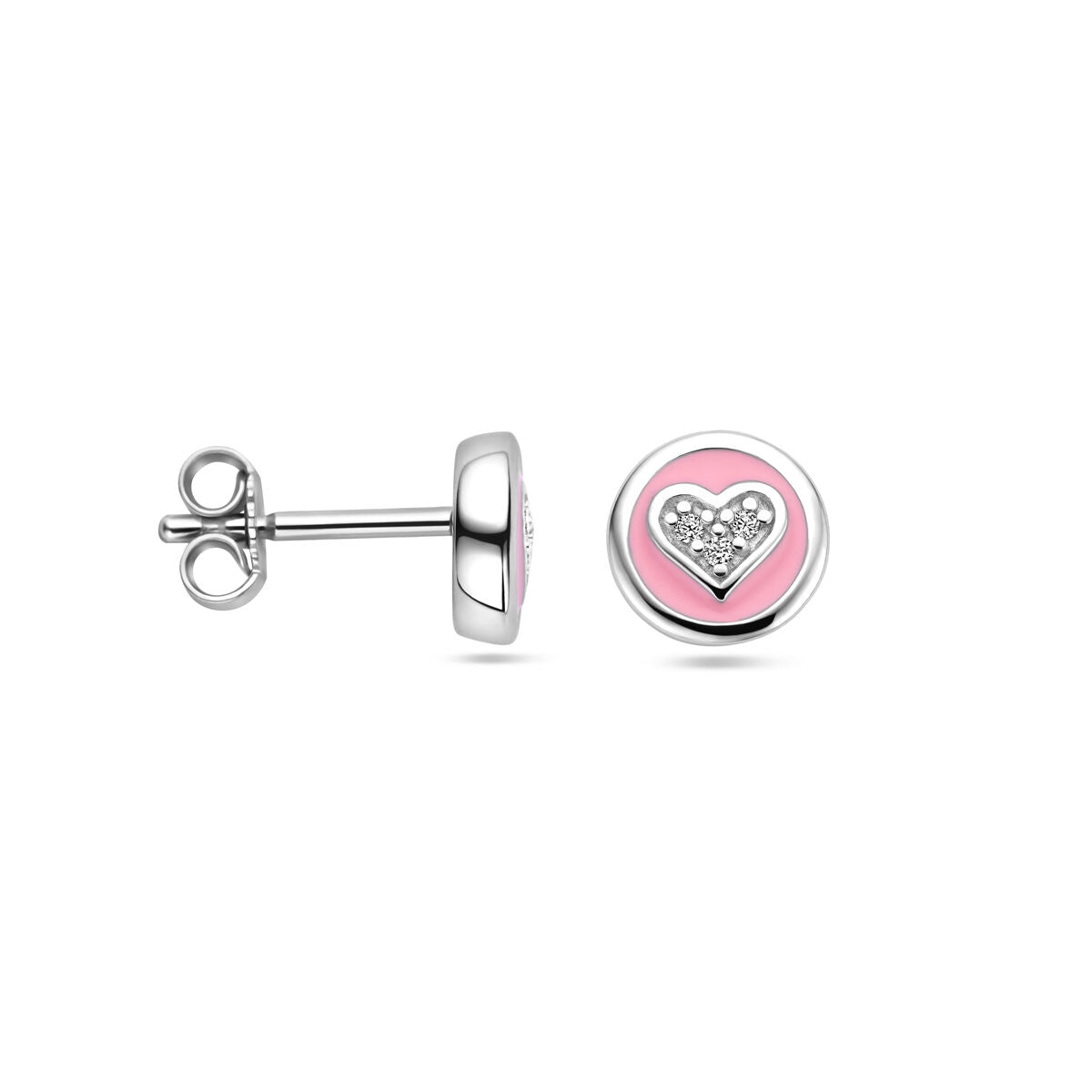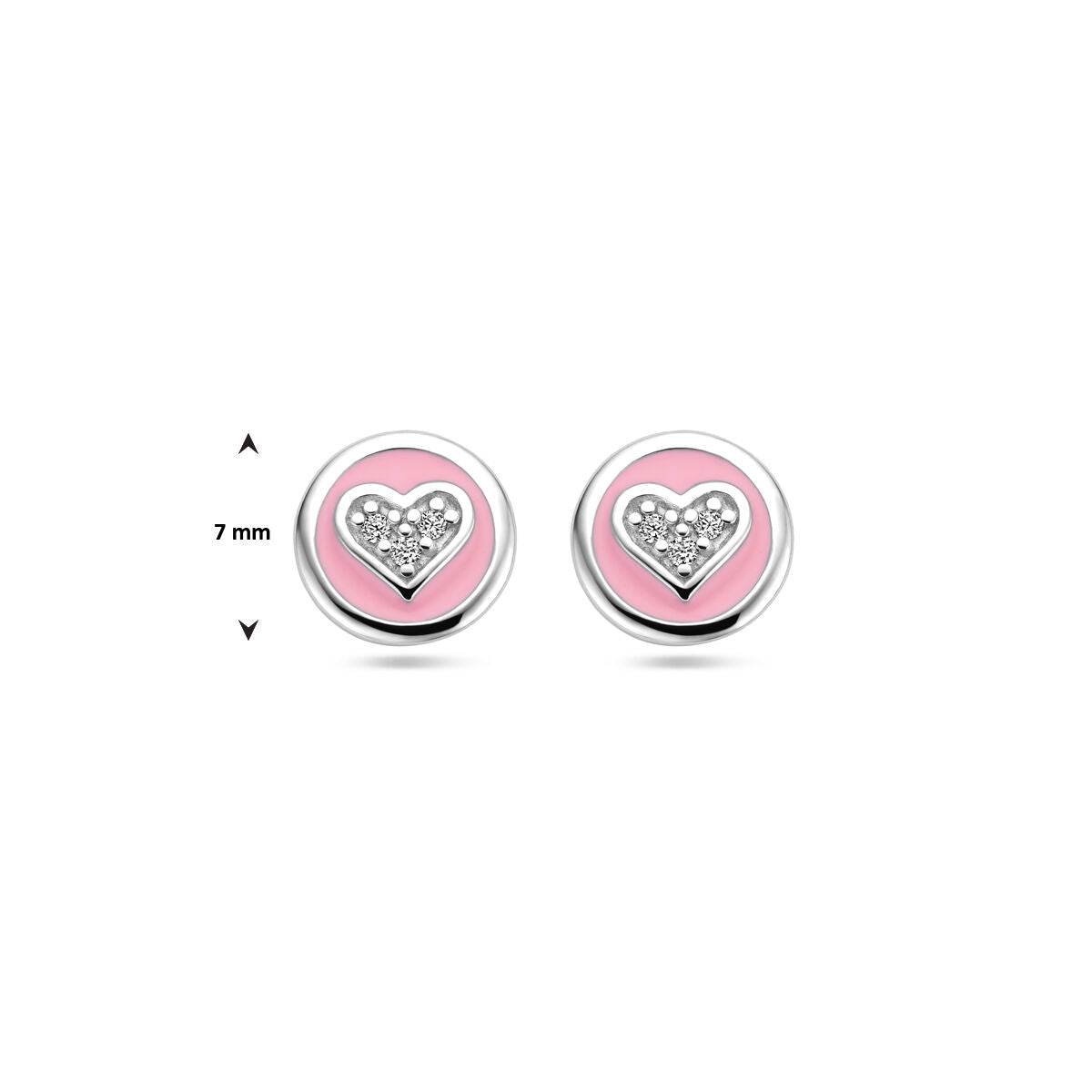 Zilveren kinder oorknopjes met roze emaille en zirkonia hartje