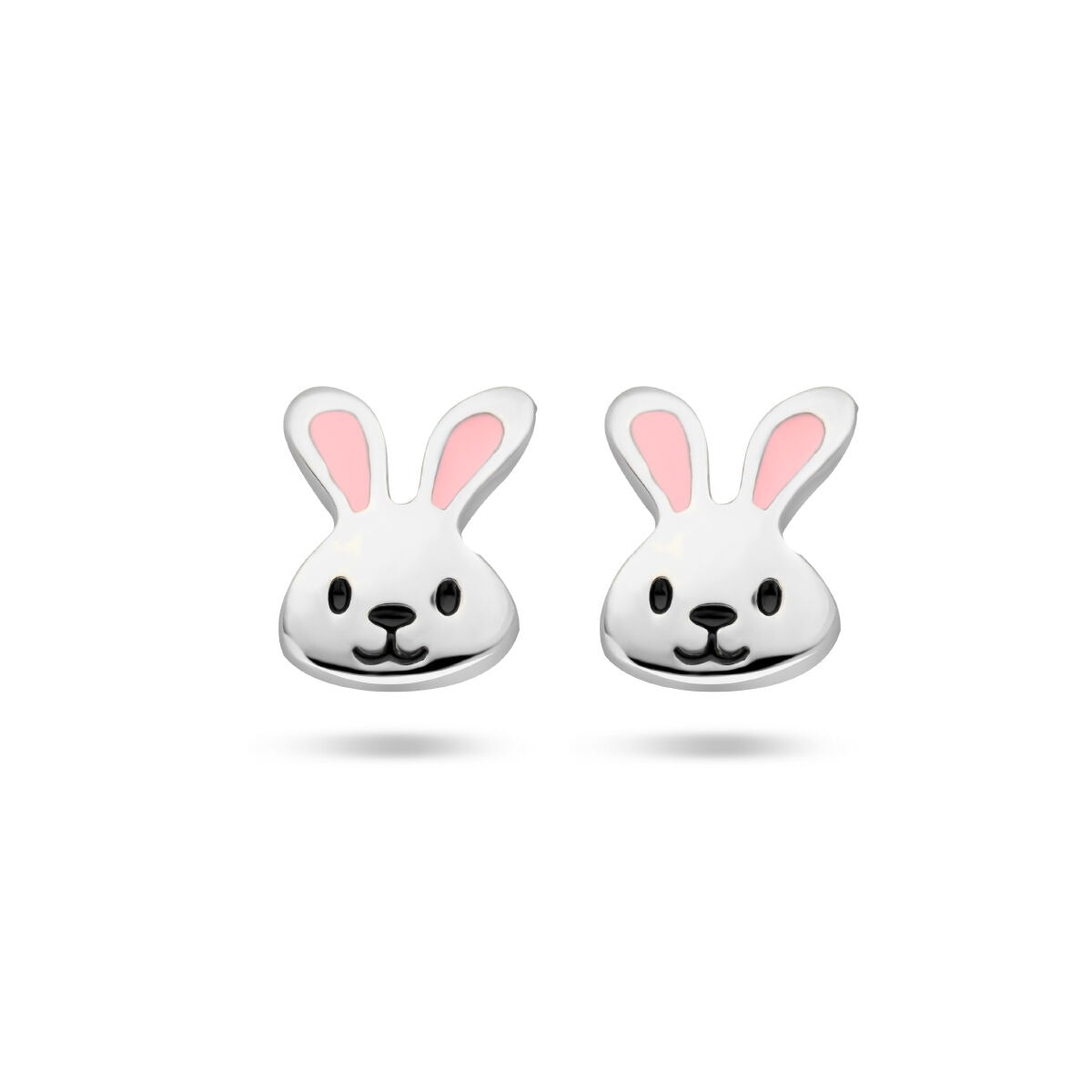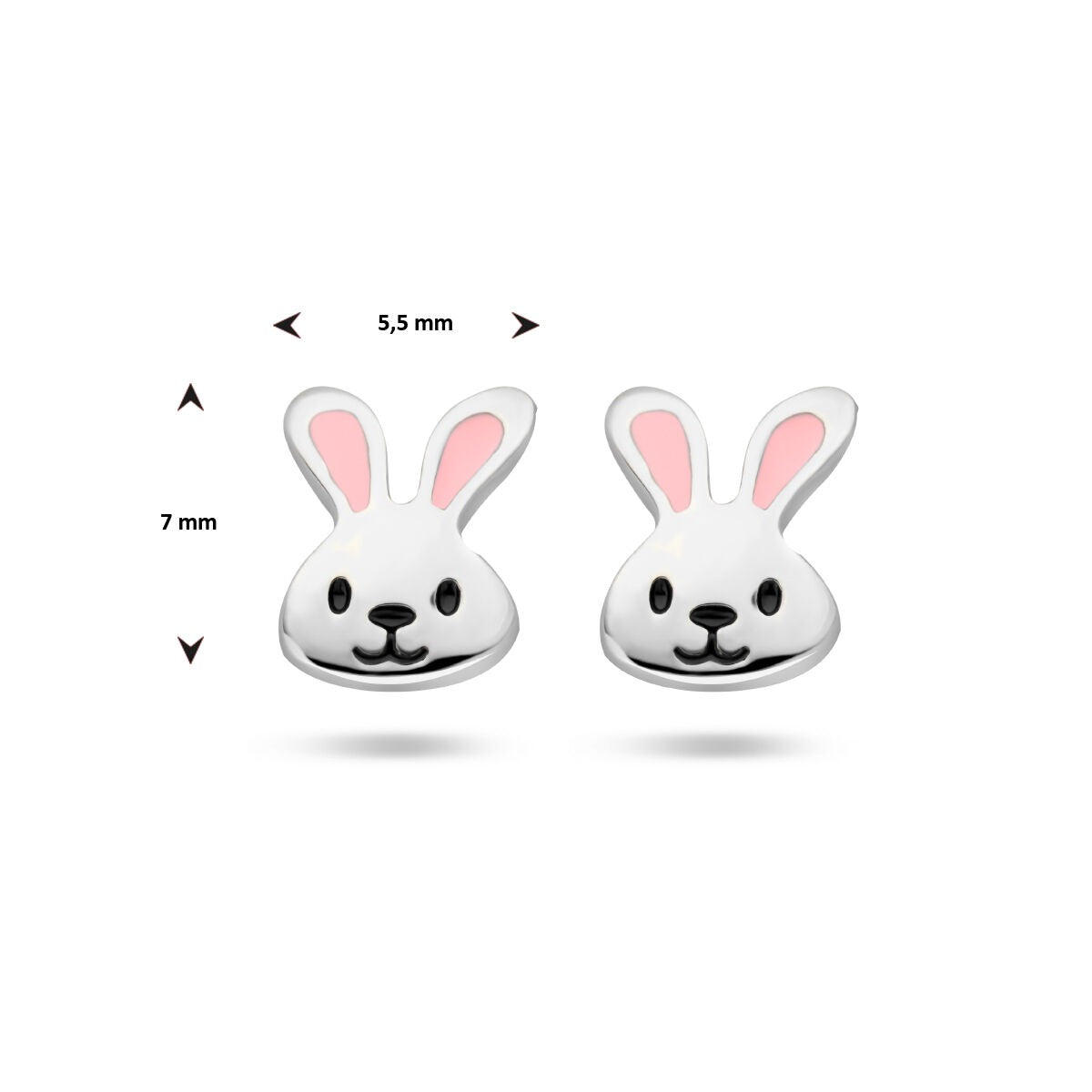 Zilveren konijn oorknoppen met emaille – kindersieraad