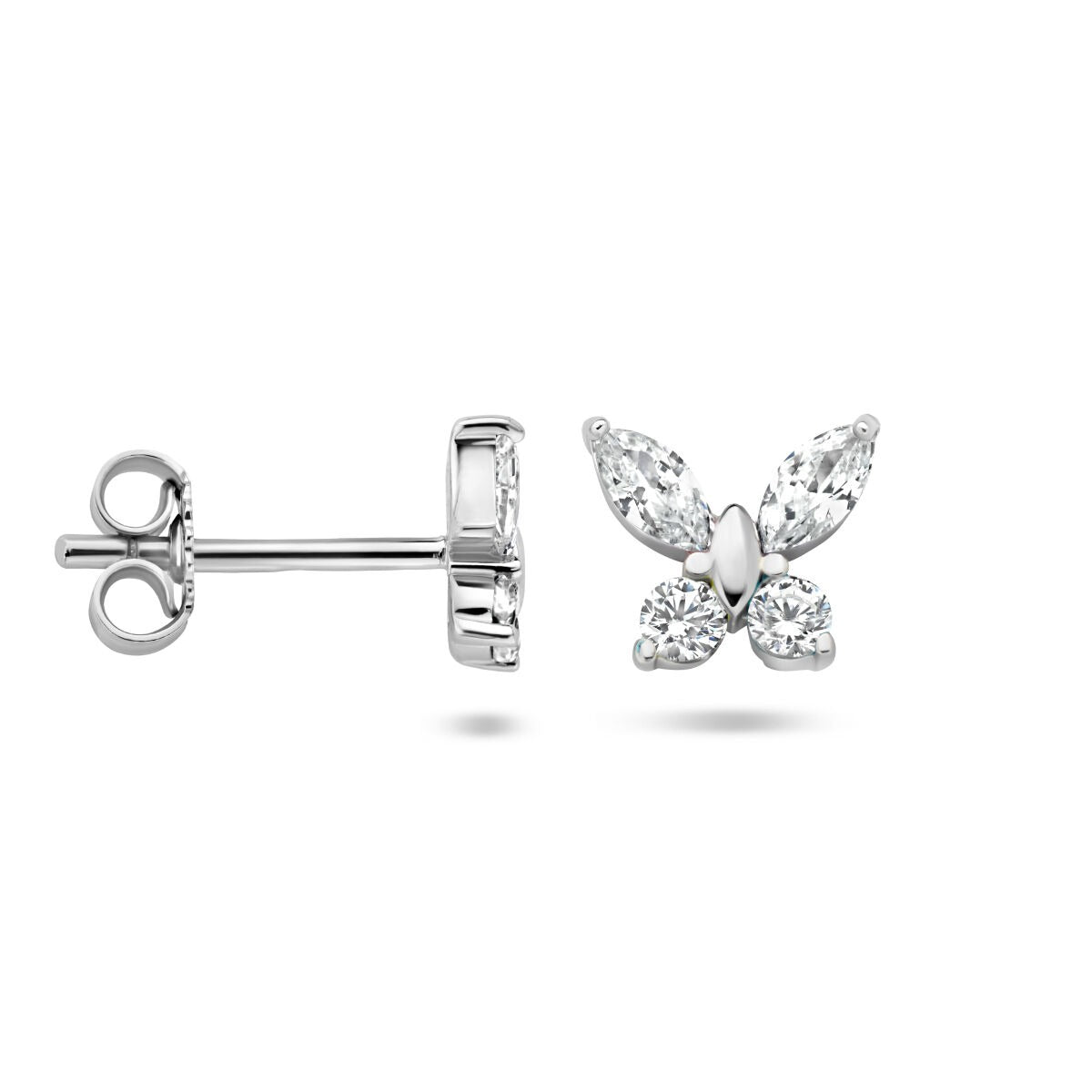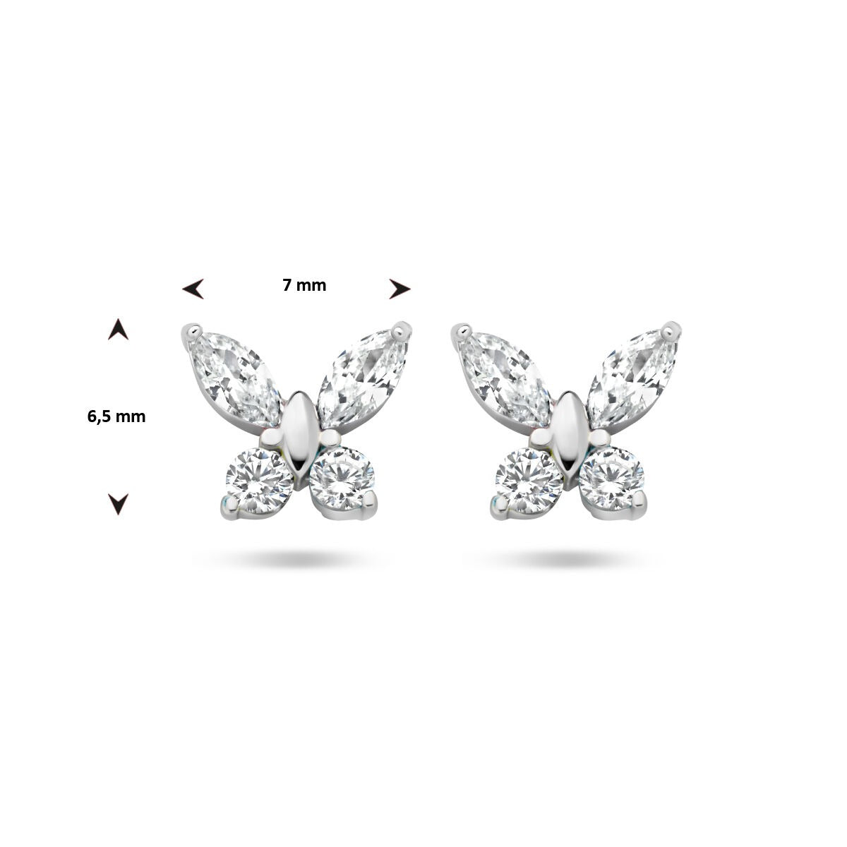 Zilveren vlinder oorknoppen met zirkonia – kinder sieraden
