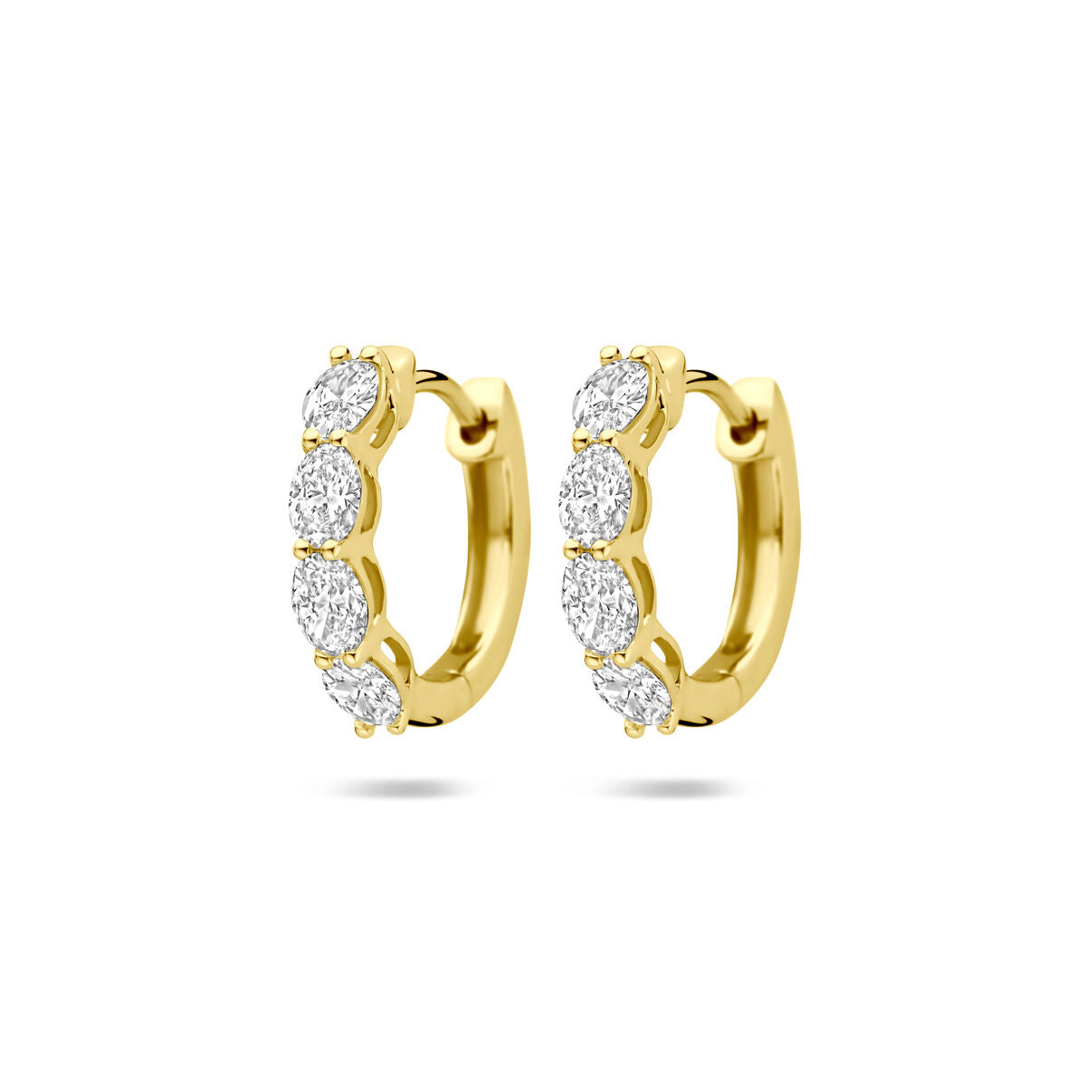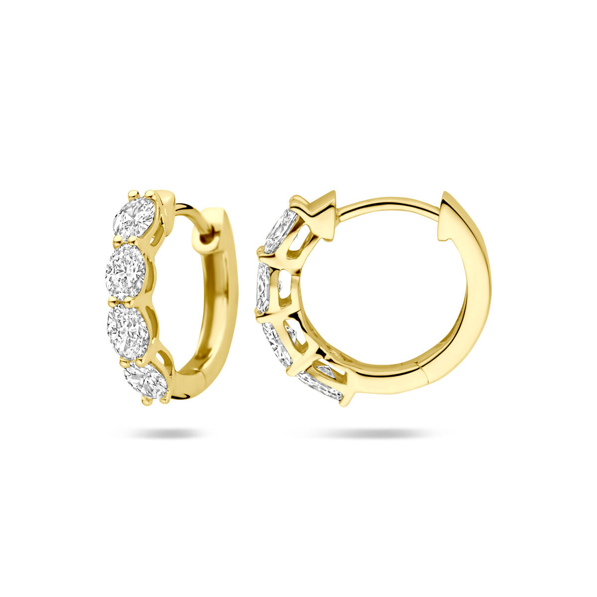 14k Geelgouden klapoorringen uitgevoerd met lab grown diamant. De klapoorringen hebben een afmeting van 14.5x3mm. Het totale diamantgewicht is 0.80ct.