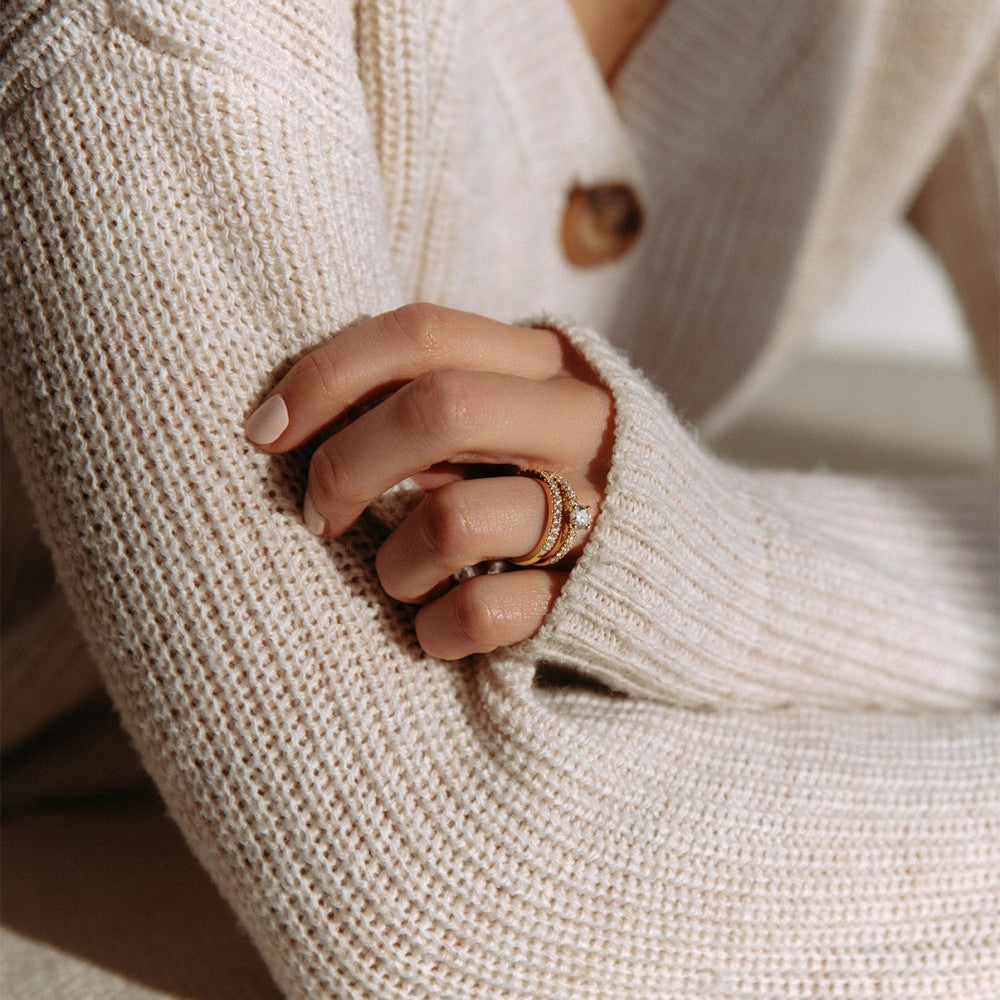Ring Mary is een absoluut plaatje om te zien. Deze moderne klassieker bevat een prachtige briljant in vierpootszetting omgeven door fijnere briljanten in de scheen. Dankzij de open zetting vangt de diamant veel licht en schittert hij optimaal. Mary is prachtig te combineren met een gladde of diamanten rijring. Probeer haar voor extra sparkle bijvoorbeeld eens samen met ring Millie.