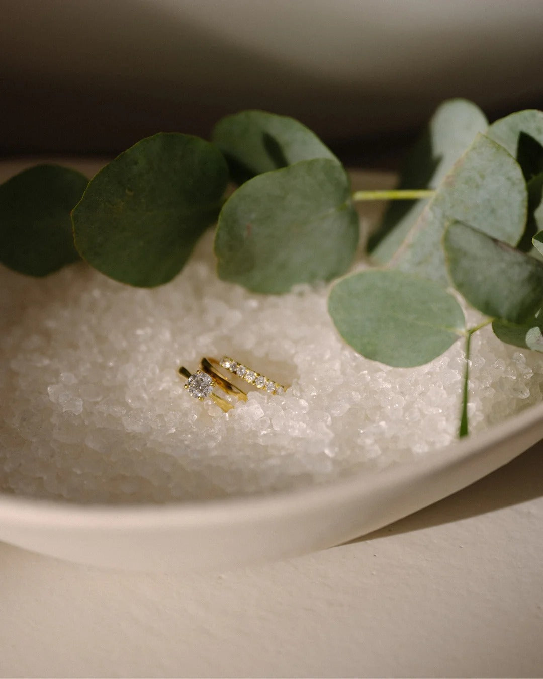 Ring Olivia is onderdeel van een set, in onze collectie zijn bijpassende oorbellen en een collier te vinden. De solitair is perfect te combineren met onze diamanten rijring millie