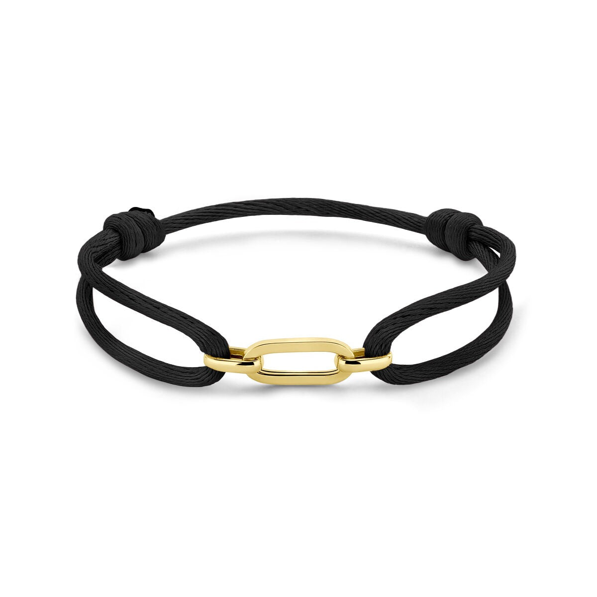 Zwart gevlochten dames armband met 14k geelgouden schakel – verstelbaar 13-26 cm