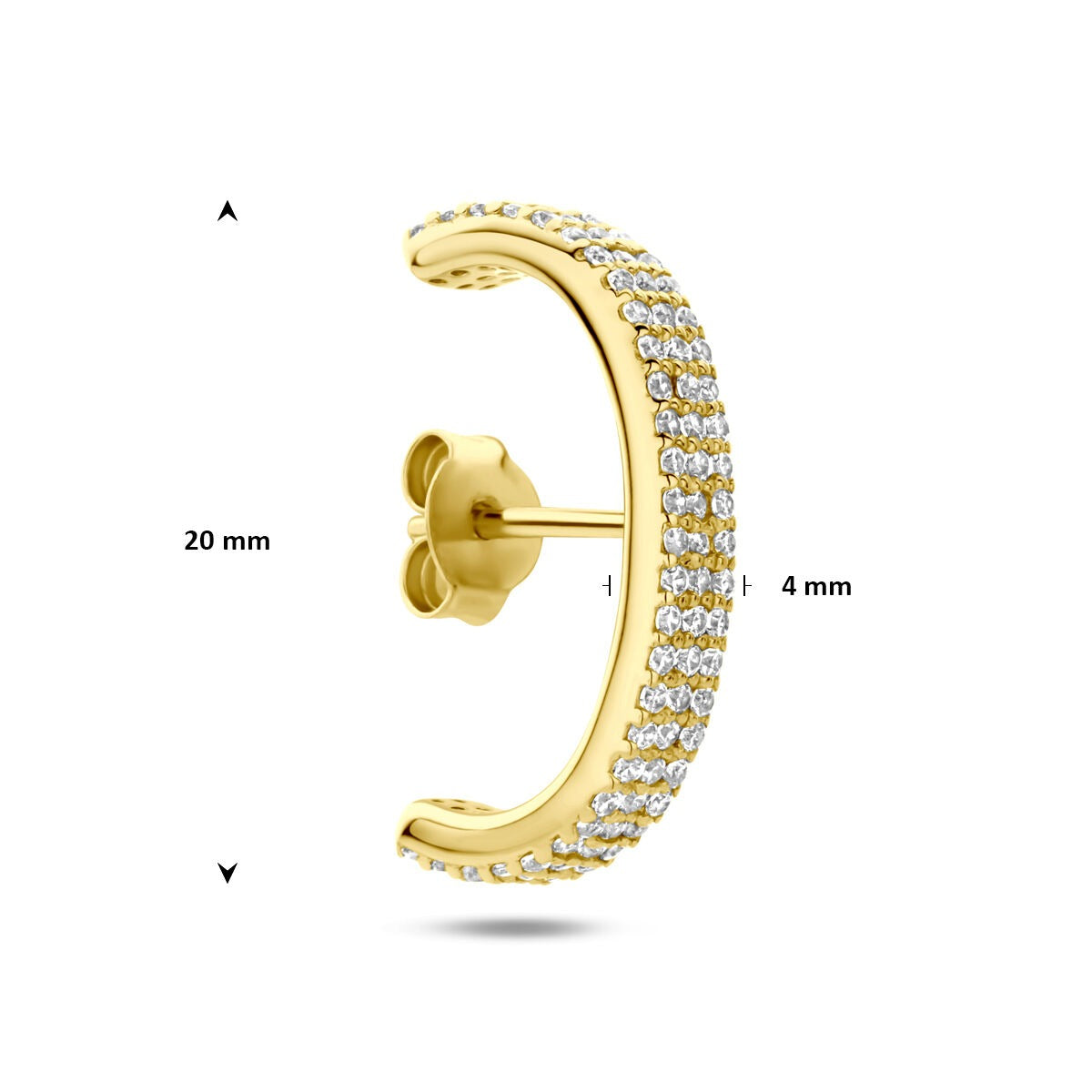 De oorbel heeft een afmeting van 20 x 4 mm en is voorzien van een poussette sluiting voor een comfortabele en veilige pasvorm. Dit artikel wordt per stuk verkocht, waardoor het ook ideaal is om te combineren met andere oorbellen voor een persoonlijke ear party.