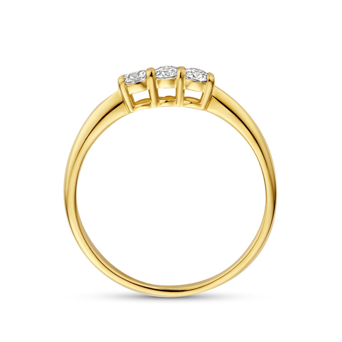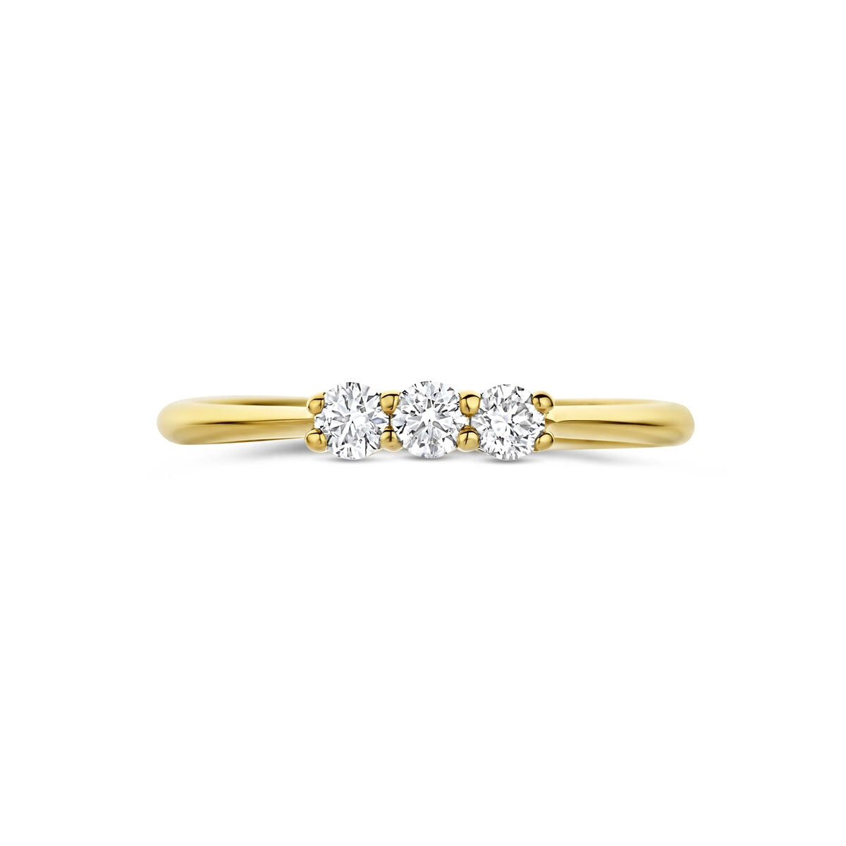 Deze 14k geelgouden ring combineert tijdloze elegantie met een moderne, verantwoorde keuze. In het hart van dit verfijnde ontwerp schittert een briljant geslepen lab grown diamant van 0.24ct, met een zuiverheid van VS2 en een transparante schittering die elke beweging vangt. De diamant is klassiek gezet in een chatonzetting, wat het licht prachtig laat reflecteren en de steen een prominente plek geeft.