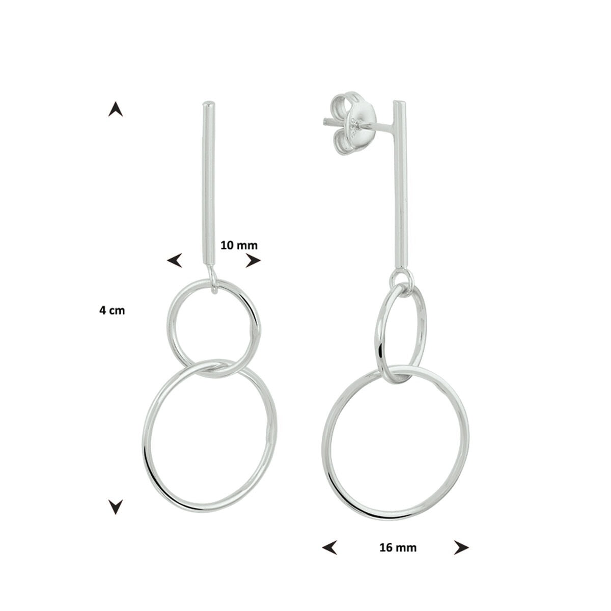 Deze elegante zilveren oorhangers zijn een verfijnde blikvanger in elke sieradencollectie. Vervaardigd uit gerhodineerd 925 zilver combineren ze moderne eenvoud met speelse elegantie. De oorhangers bestaan uit twee glanzende cirkels van 10 en 16 mm, subtiel verbonden aan een fijne draad, waardoor ze licht bewegen bij elke stap. De totale lengte van 4 cm geeft een sierlijk vallend effect dat zowel overdag als ’s avonds moeiteloos klasse uitstraalt.