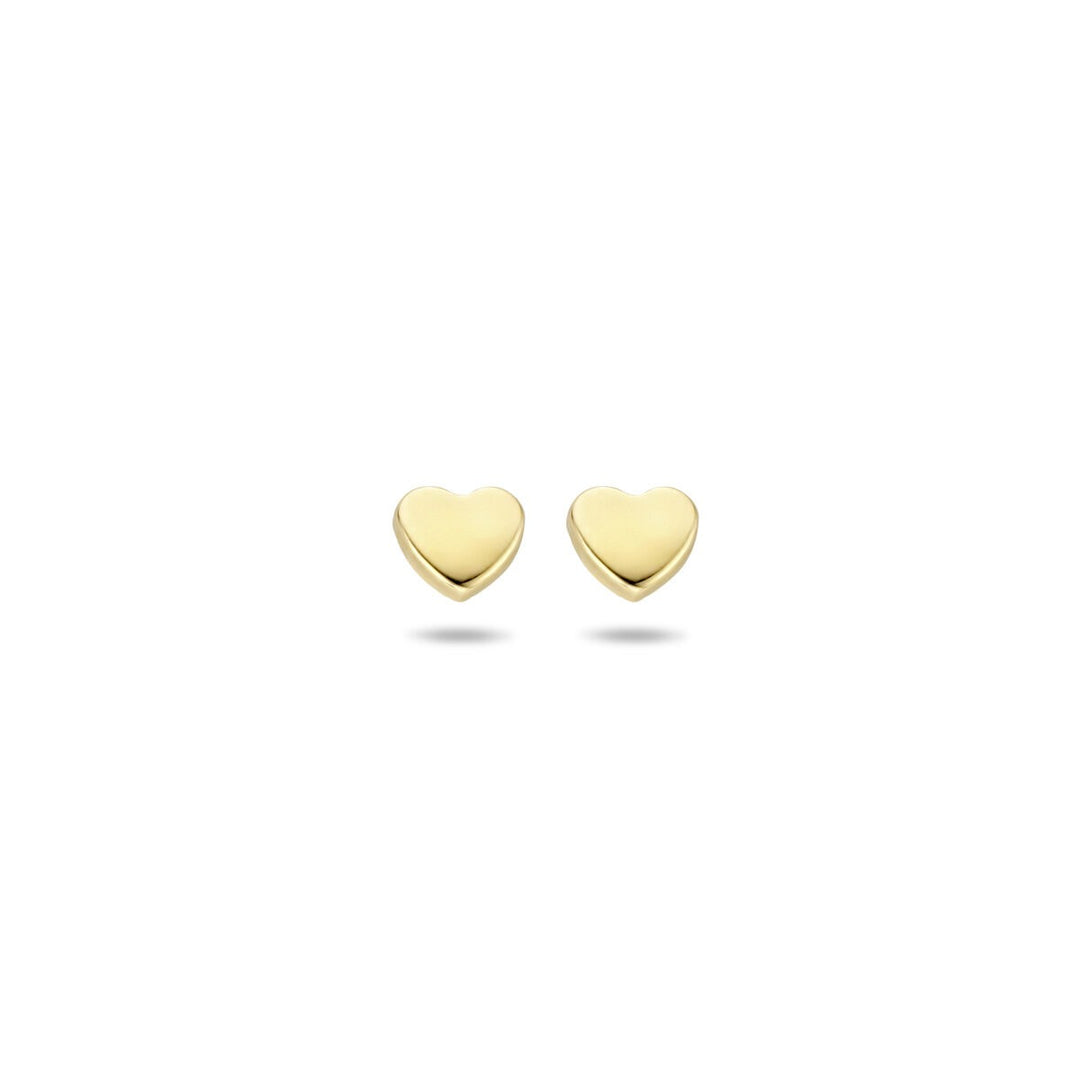 Geelgouden oorknoppen met hart en zirkonia – 14k