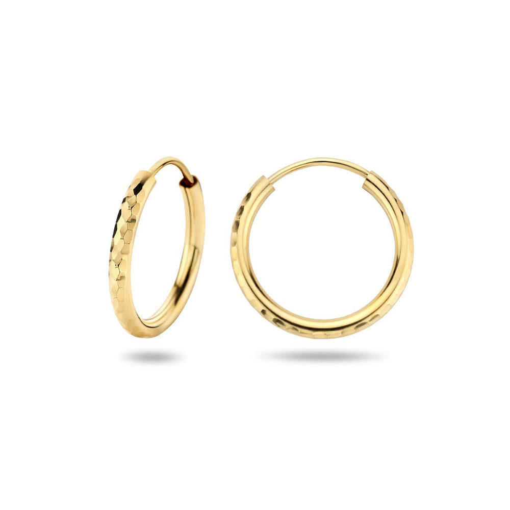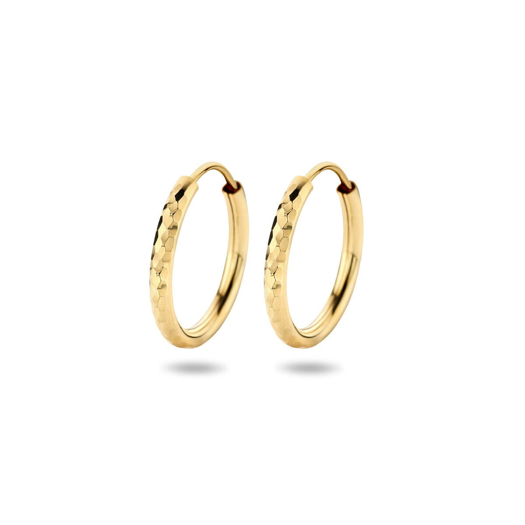 Geelgouden oorringen met gediamanteerde buis – 14k