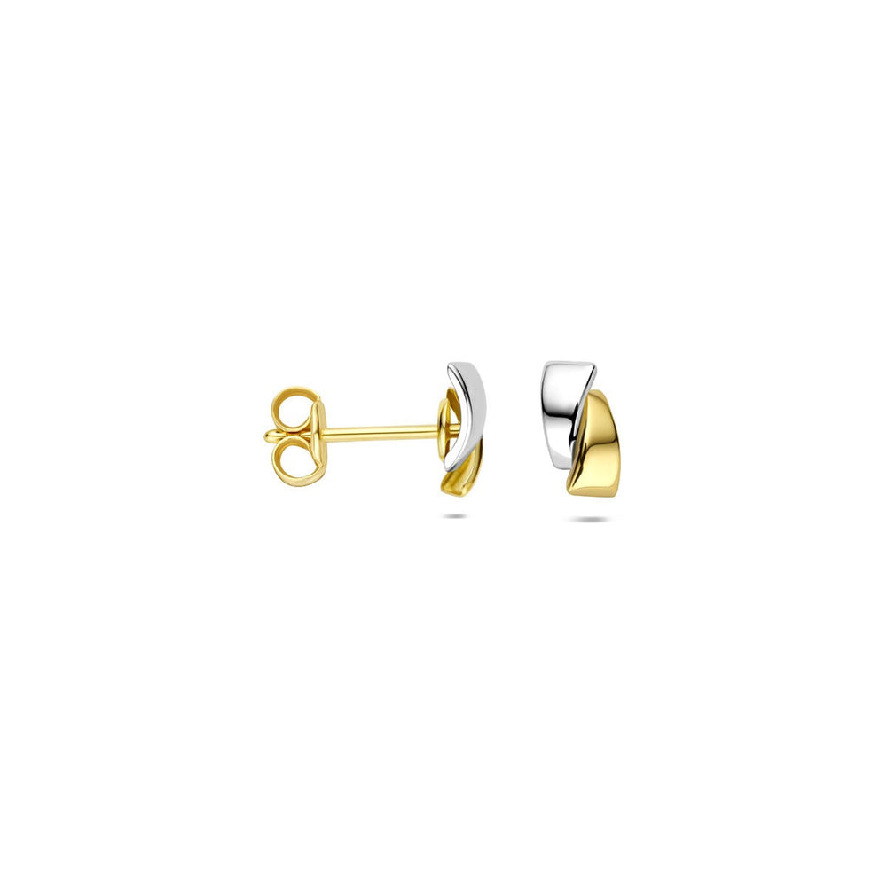 Bicolor oorknoppen – 14k wit- en geelgoud met poli afwerking