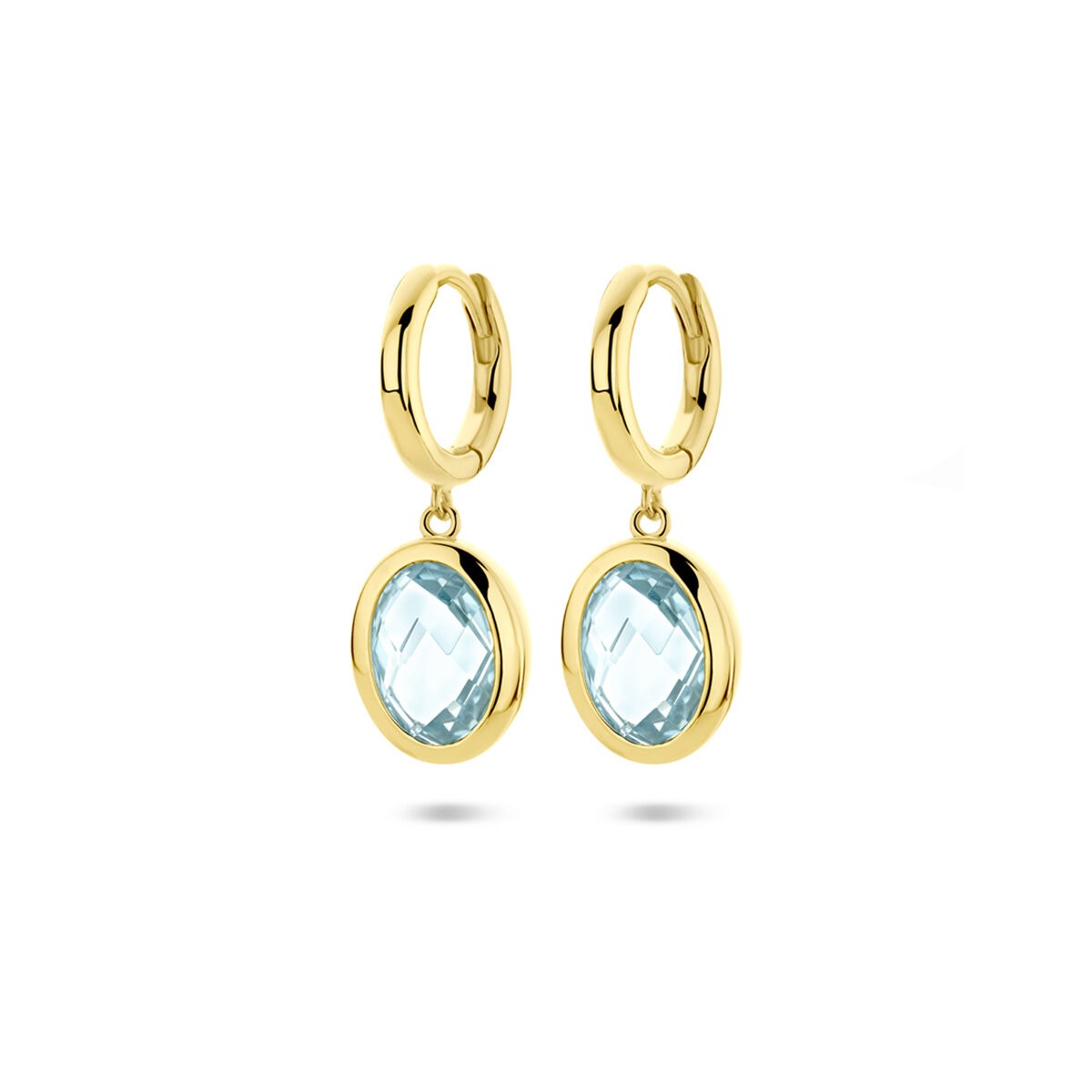 Verguld zilveren klapoorringen met sky blue topaas – 26 mm