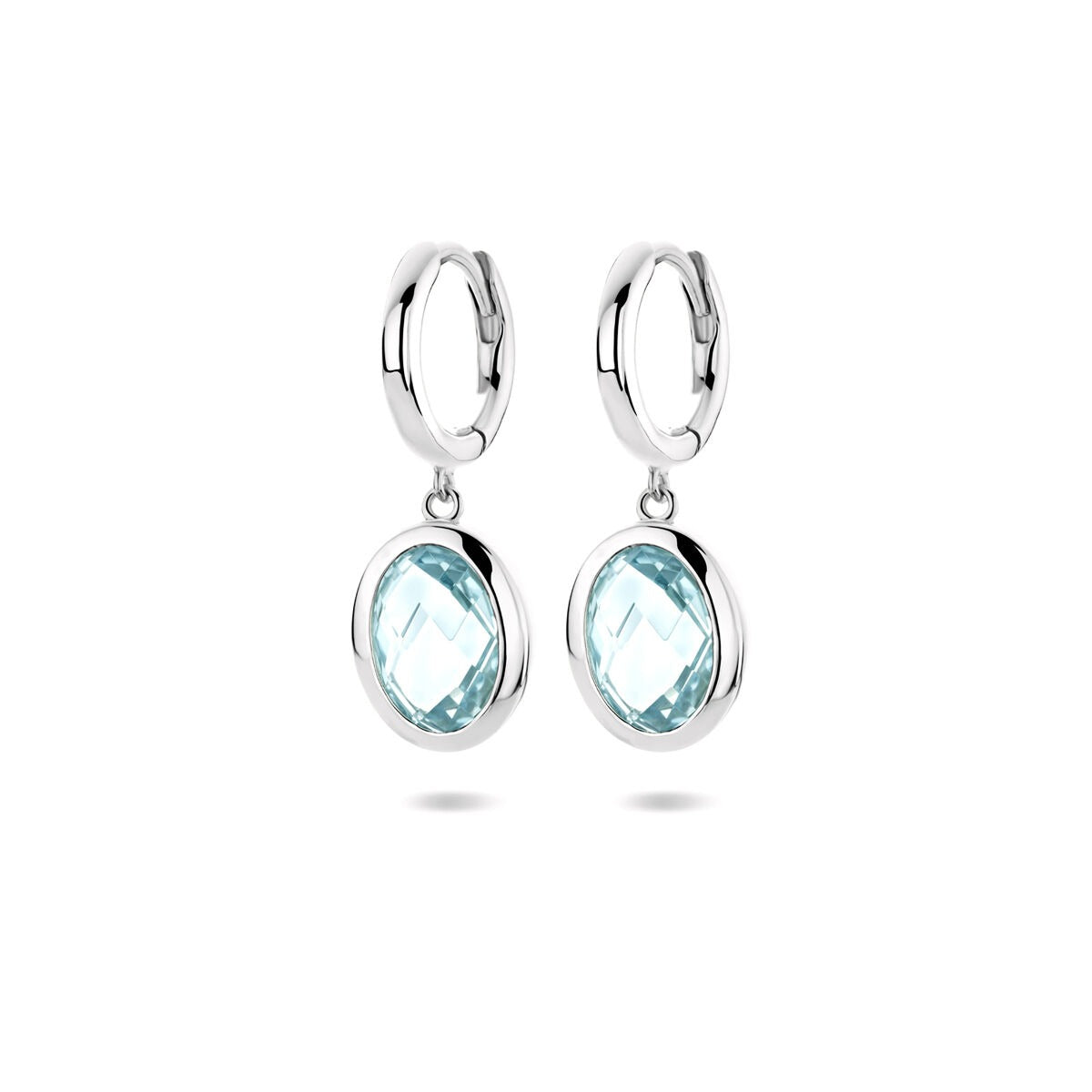 Gerhodineerd zilveren klapoorringen met sky blue topaas – 26 mm