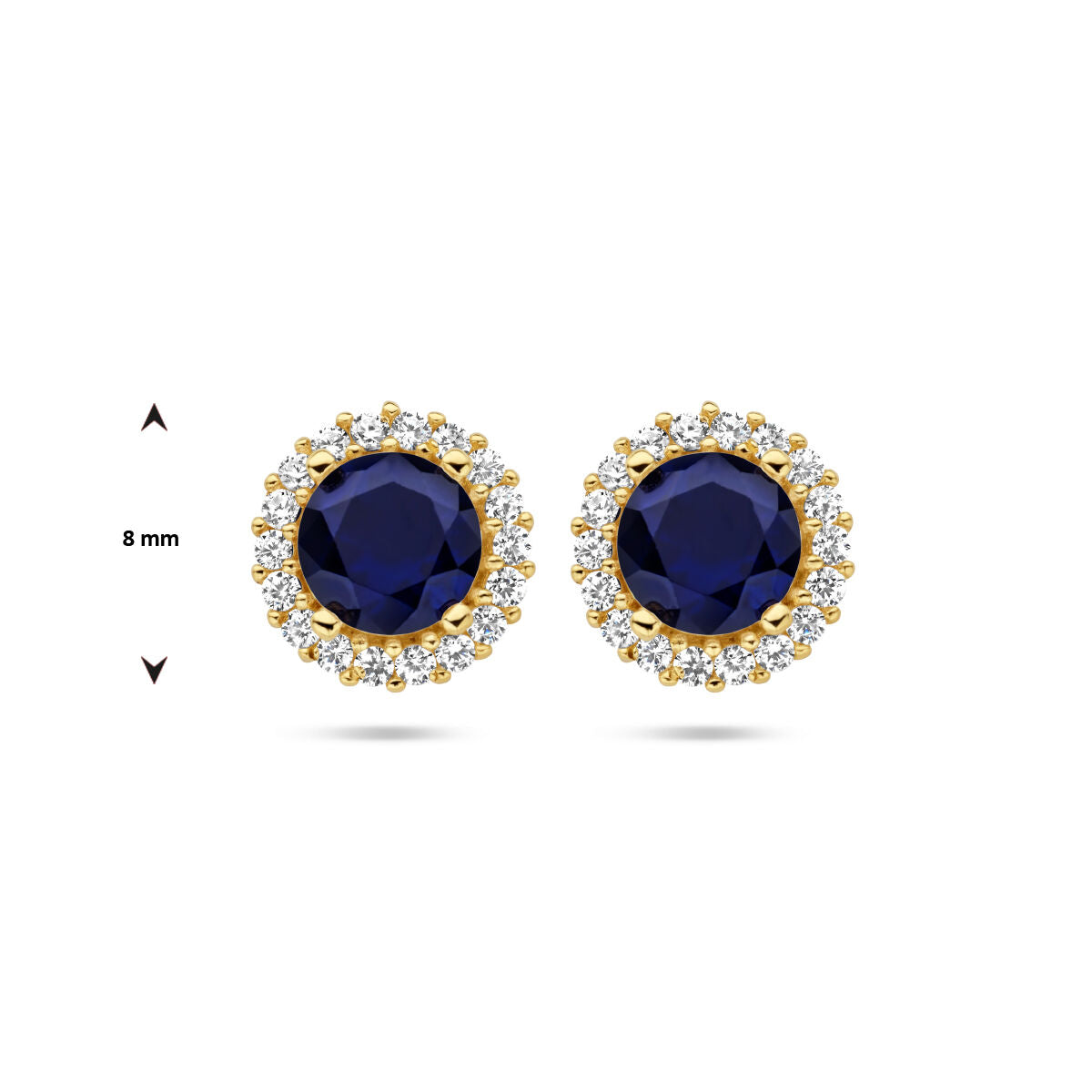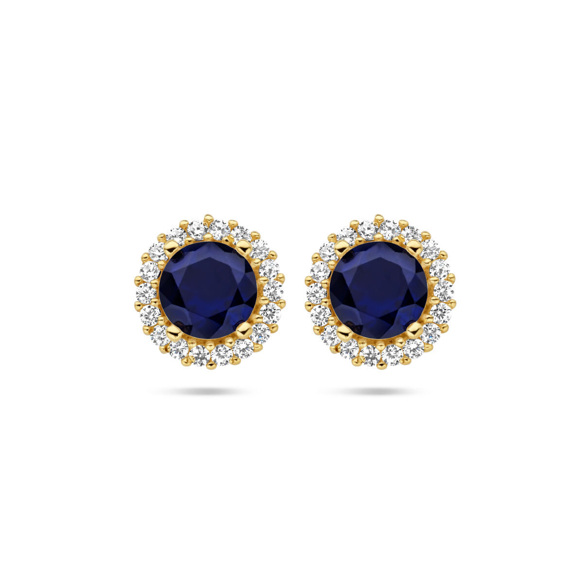 oorknoppen saffier zirkonia halo 14K geelgoud