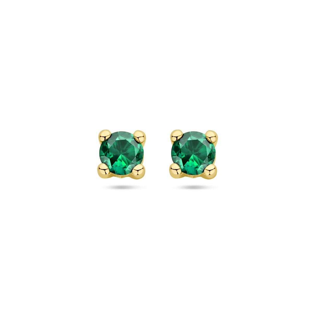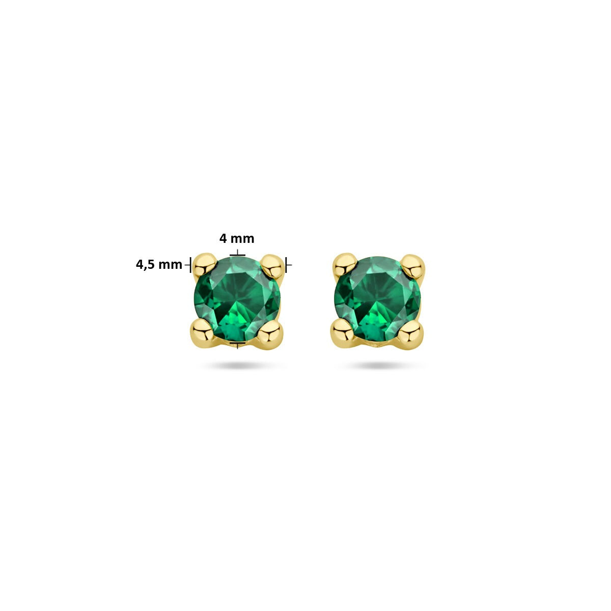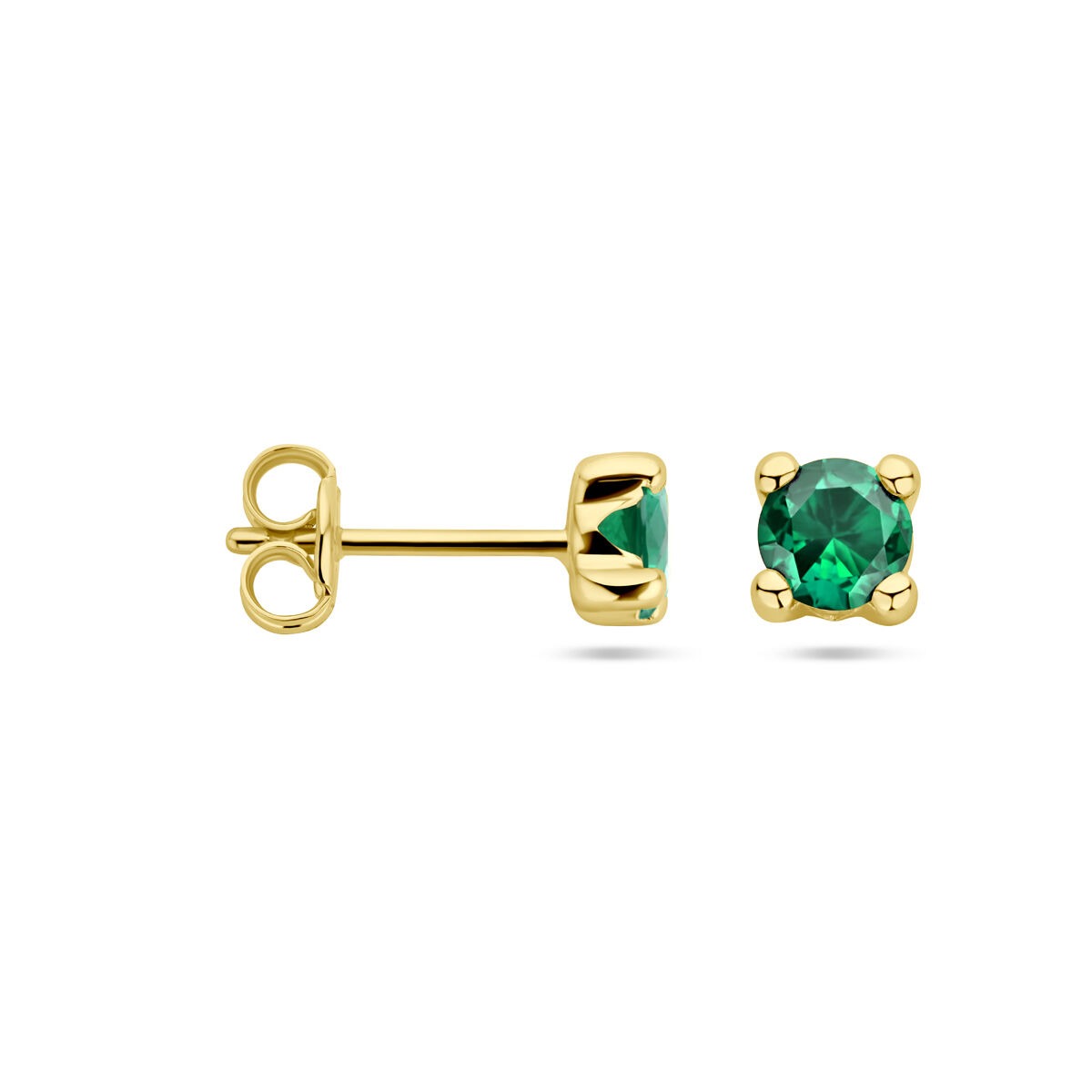 14k Geelgouden oorknoppen uitgevoerd met synthetisch smaragd.
