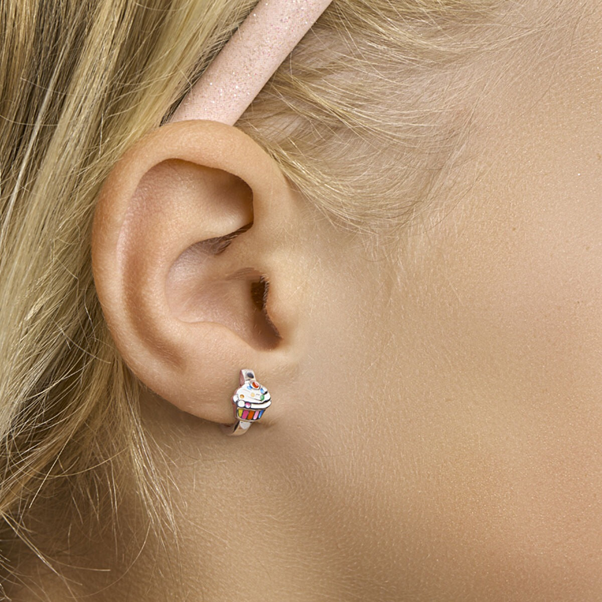 Gerhodineerd Zilveren Kinder Oorringen met Cupcake in Emaille