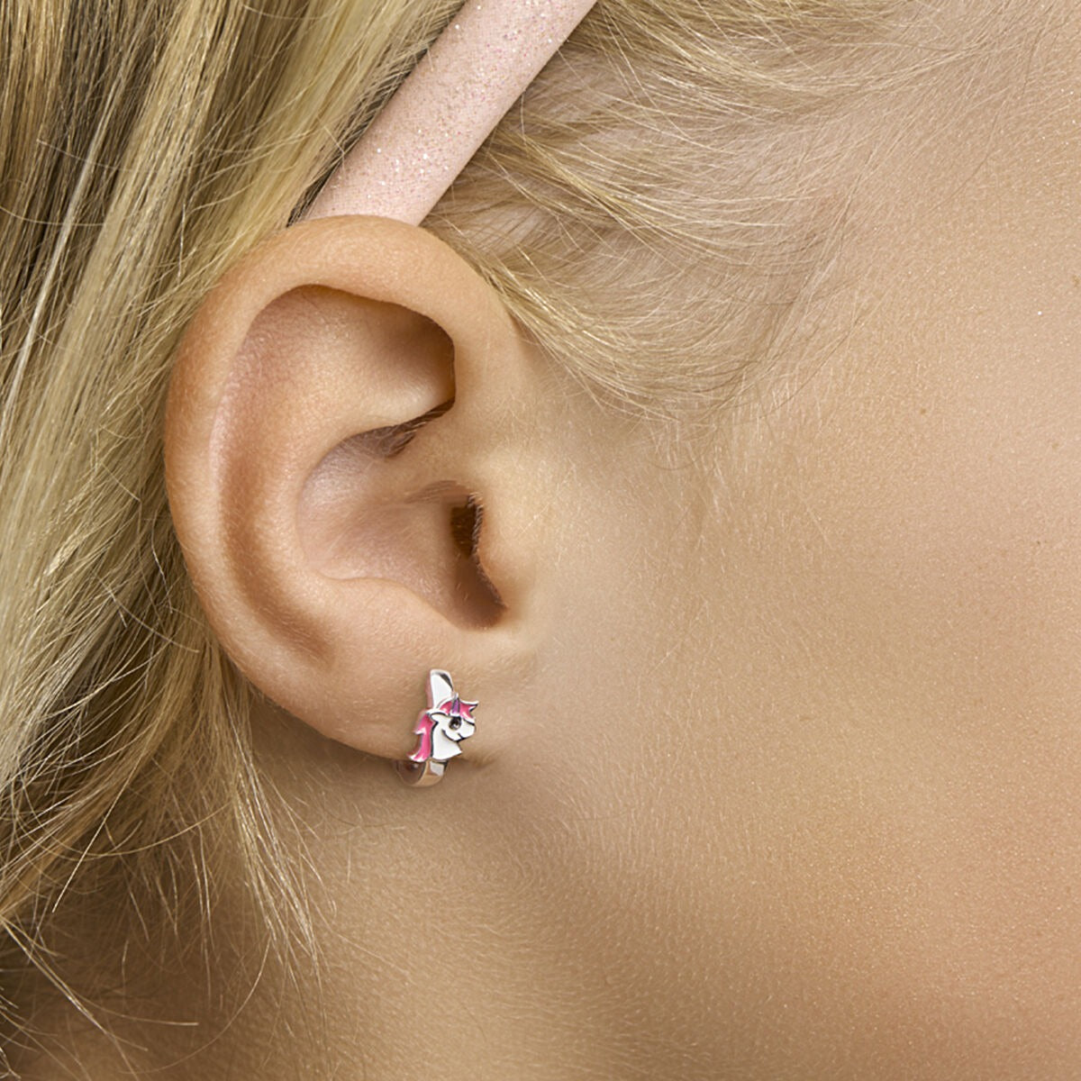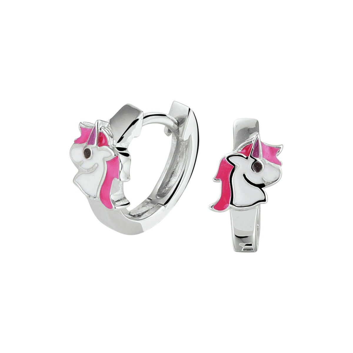Gerhodineerd Zilveren Kinder Oorringen met Eenhoorn in Emaille