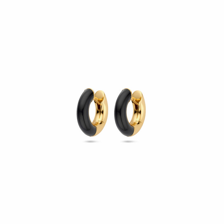 925 zilver vergulde oorringen uitgevoerd met zwart emaille. De oorringen hebben een breedte van 4mm. Geen garantie op de plating.