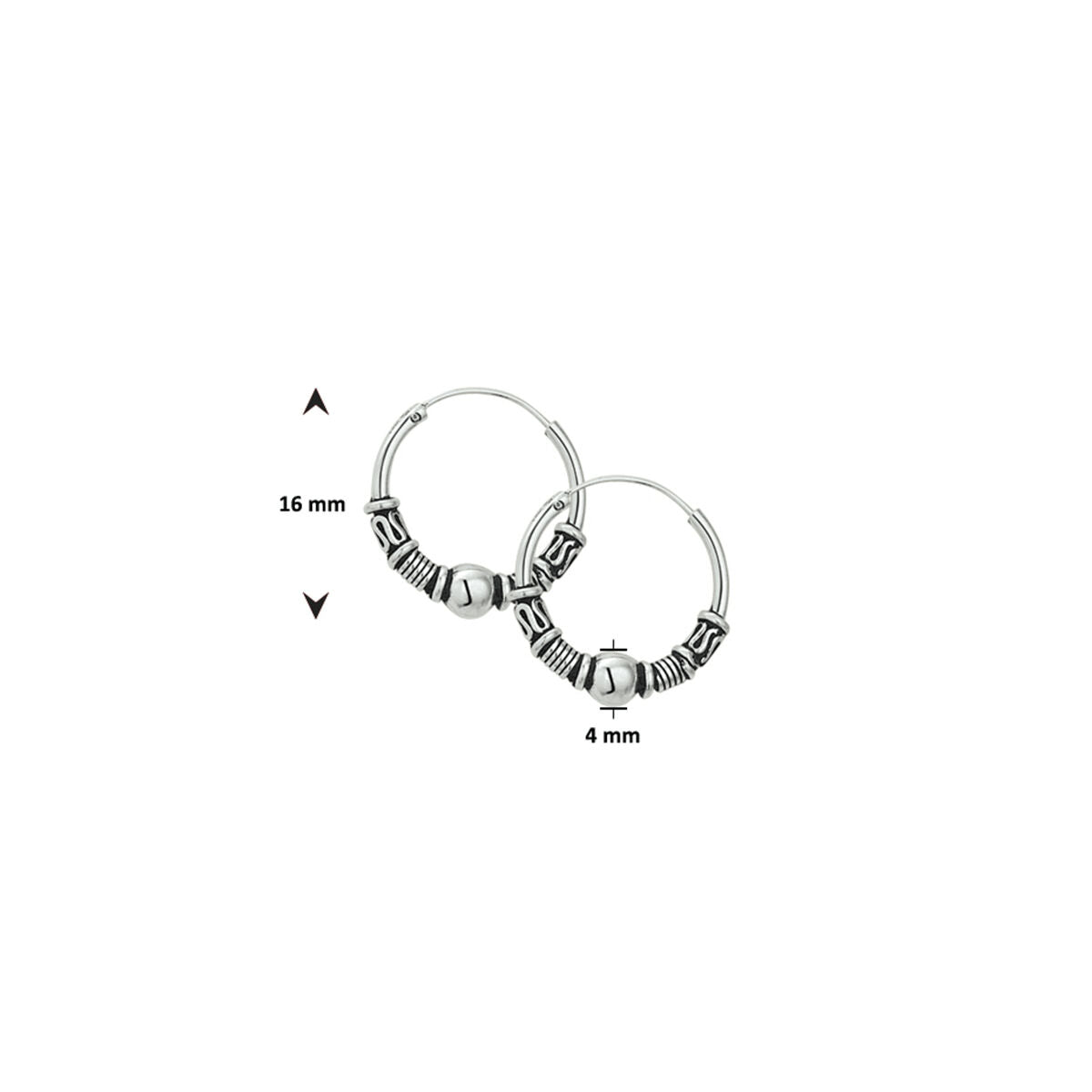 Geoxideerd 925 zilveren oorringen in Bali stijl. De oorringen hebben een breedte van 4mm.