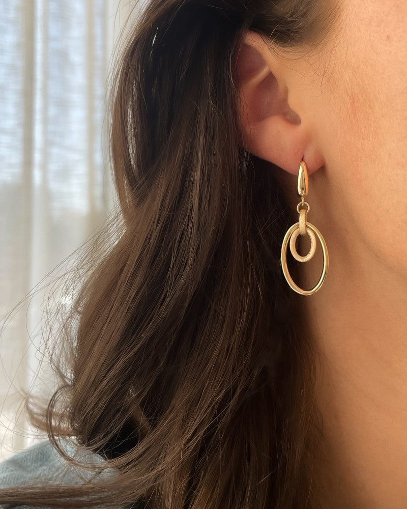 Bij Van der Kooij vinden we dat sieraden meer moeten zijn dan alleen accessoires; ze moeten een verlengstuk zijn van jouw unieke stijl. Deze geelgouden oorhangers zijn het perfecte voorbeeld van verfijning met een speelse twist. De open hangers geven een lichte, luchtige uitstraling die de beweging van je hoofd prachtig volgt. Het ontwerp is zowel modern als tijdloos, waardoor de oorhangers zich moeiteloos aanpassen aan elke gelegenheid.