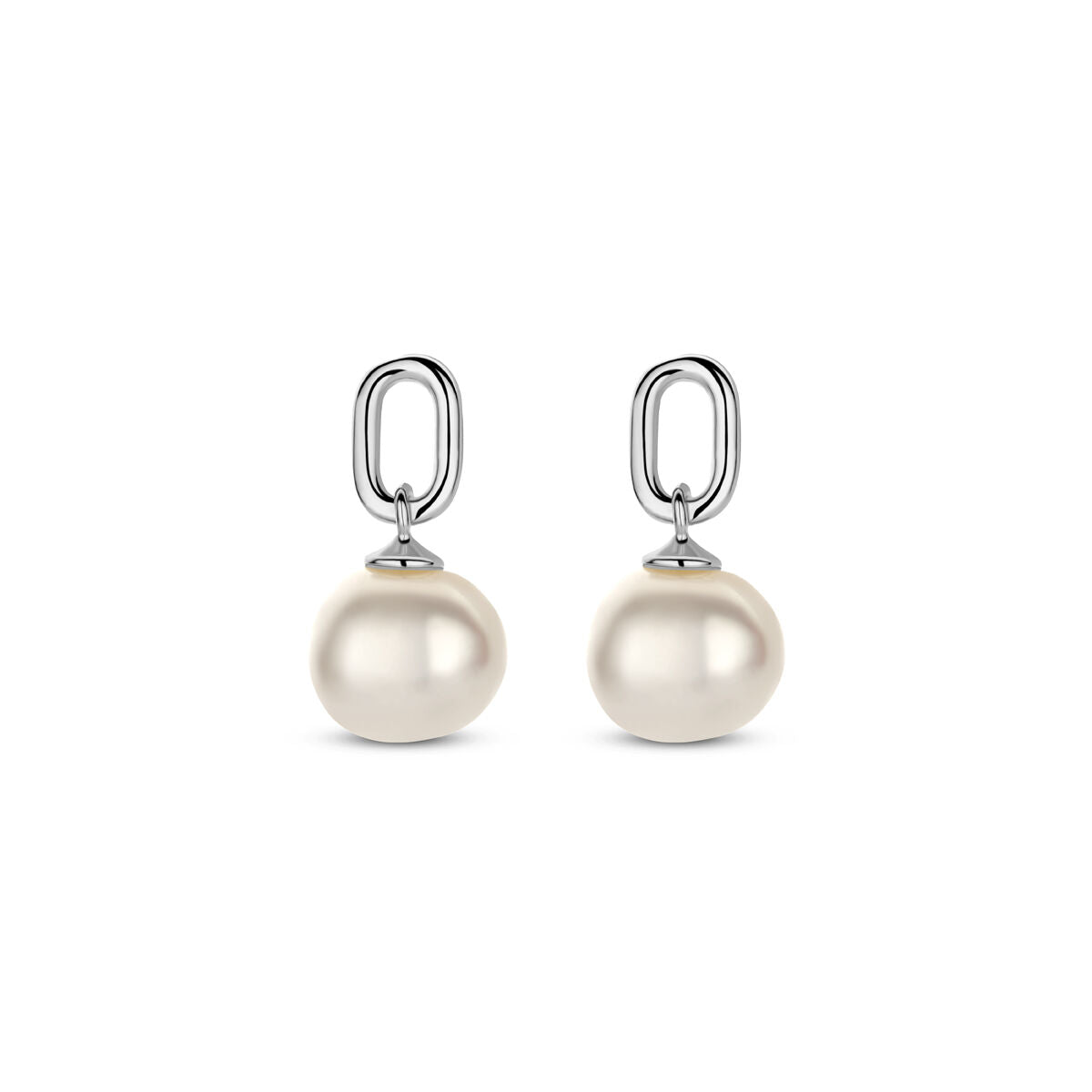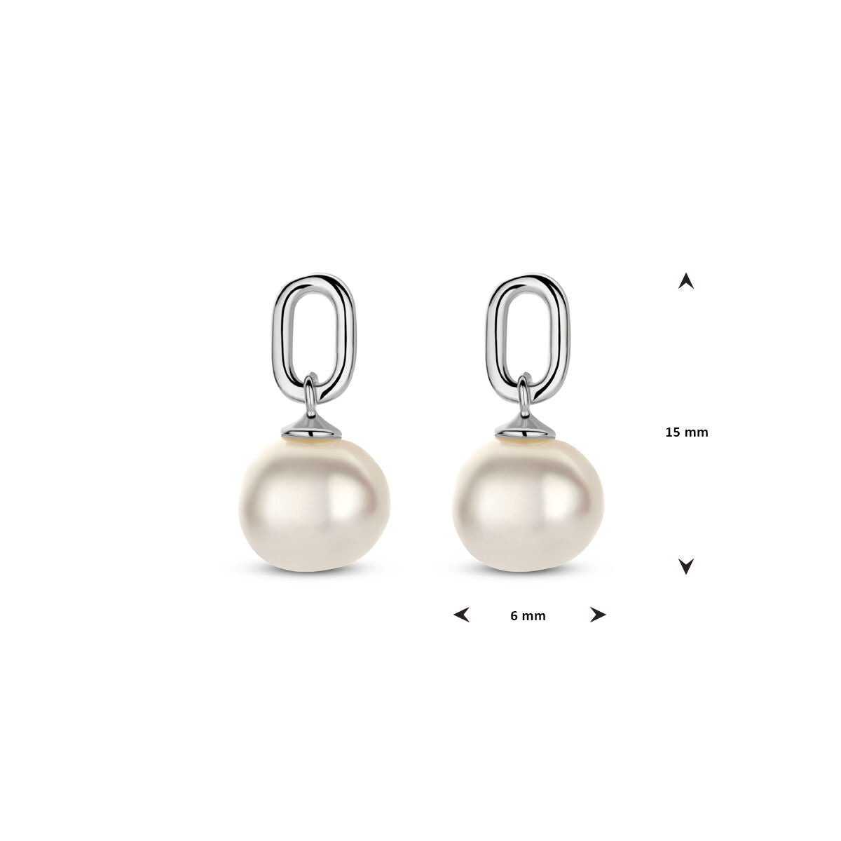 Gerhodineerd 925 zilveren oorhangers uitgevoerd met zoetwaterparel. De oorhangers hebben een totale hoogte van 15mm.