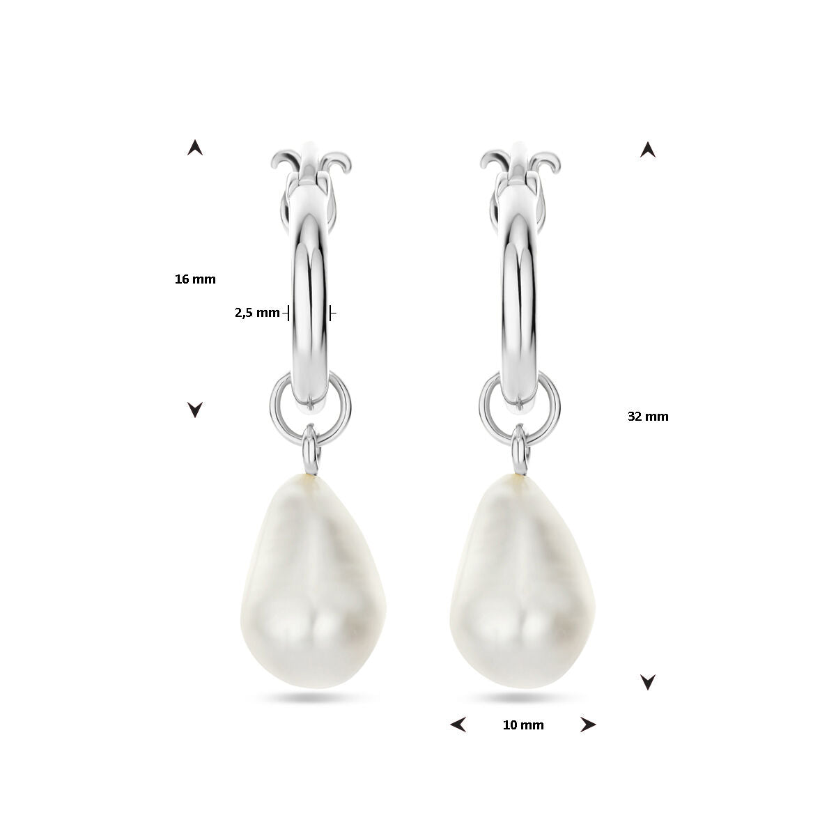 oorhangers barok parel 32 mm zilver gerhodineerd