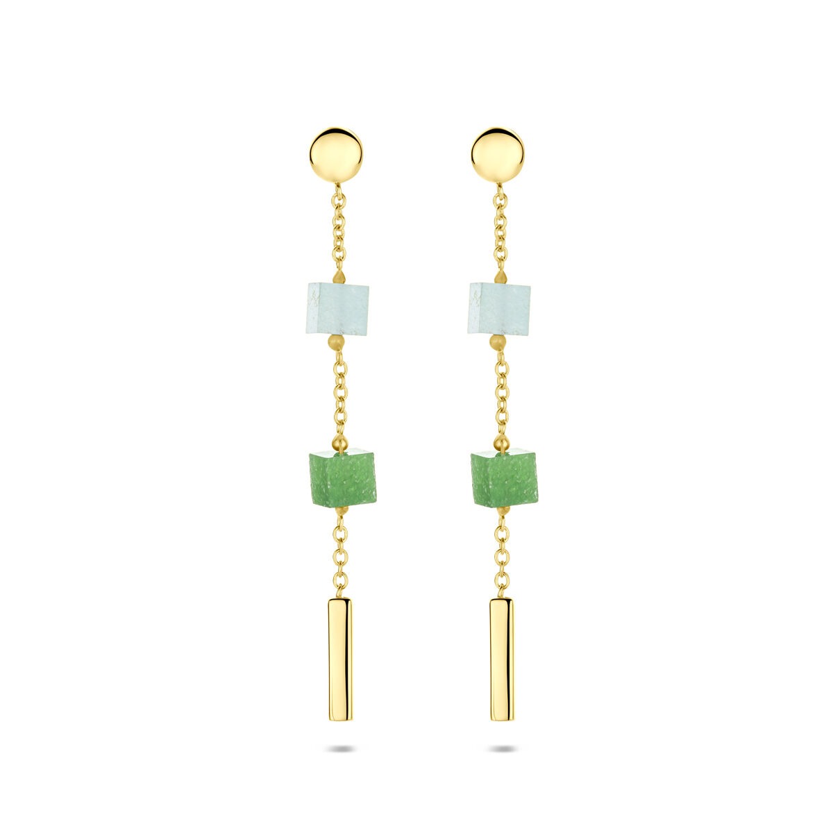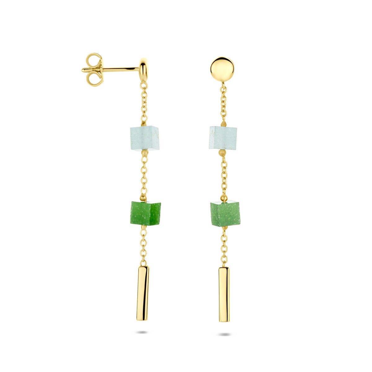 Gouden Oorhangers 14k met Blauw en Groen Kwartsiet – Dames