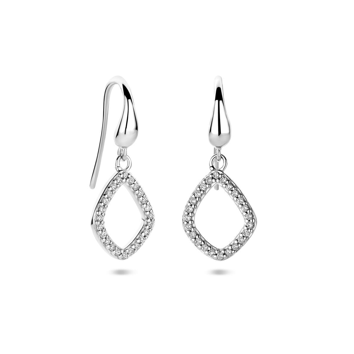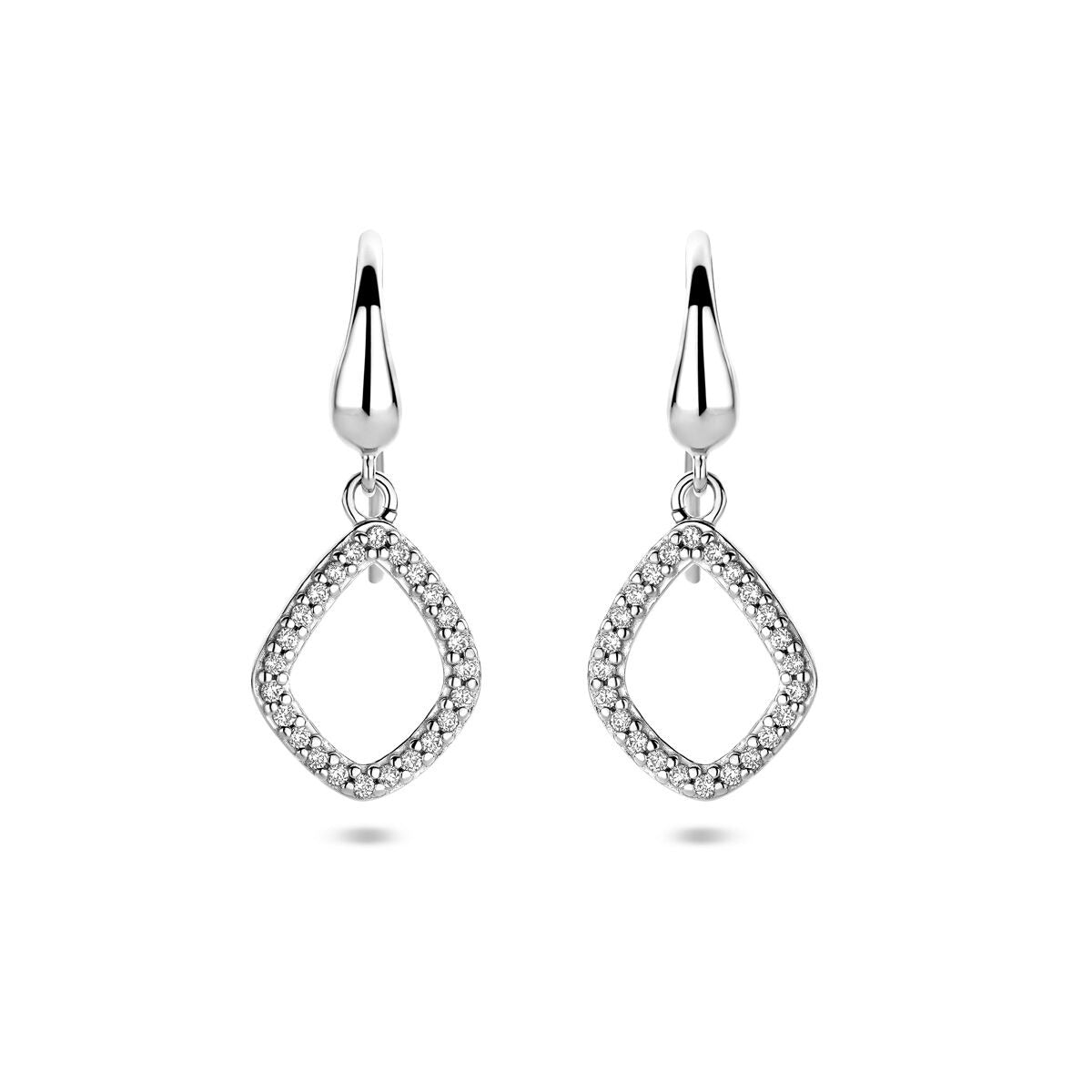 Deze verfijnde zilveren oorhangers combineren elegante vormen met subtiele schittering. Vervaardigd uit gerhodineerd 925 zilver en uitgevoerd in een moderne ruitvorm, bieden ze een luxueuze uitstraling die moeiteloos past bij zowel een casual outfit als een feestelijke gelegenheid.