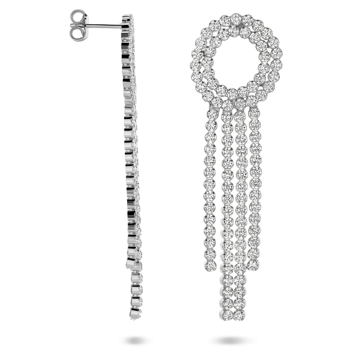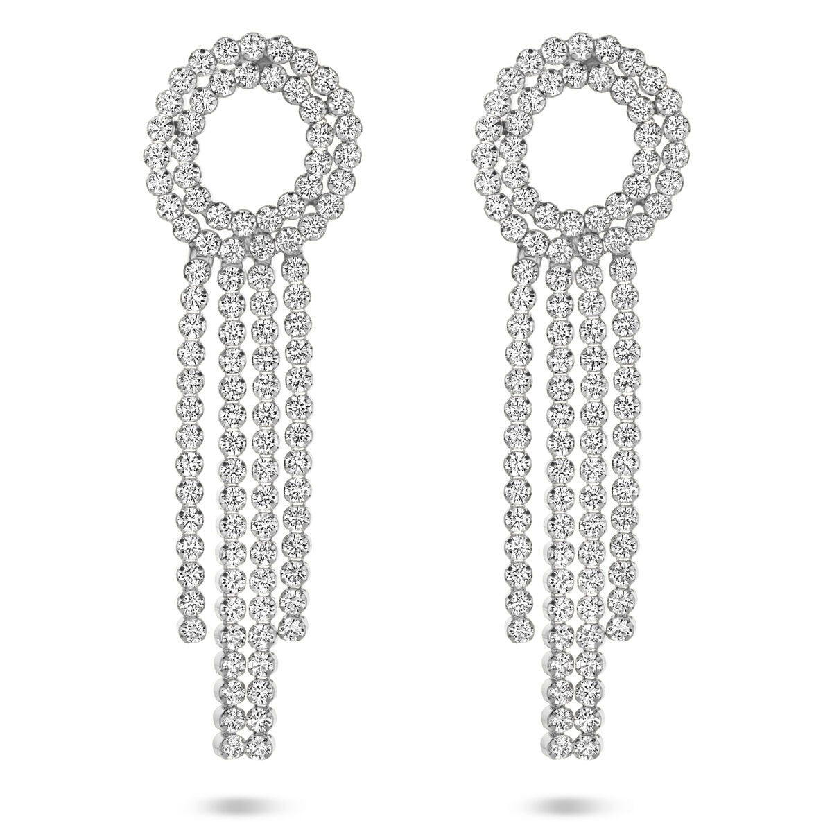 De sierlijk gevormde hangers zijn rijkelijk bezet met briljant geslepen zirkonia’s van 2,5 mm, geplaatst in een verfijnde entourage en rijzetting die het licht prachtig reflecteert. Het 925 zilver is voorzien van een rhodiumlaag, waardoor de oorhangers extra glanzen en goed beschermd zijn tegen krassen en verkleuring.