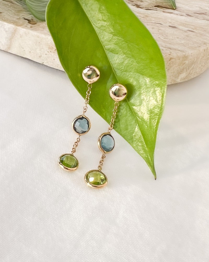 De combinatie van peridot en London Blue topaas symboliseert harmonie en verfijning, waardoor deze oorhangers niet alleen esthetisch aantrekkelijk zijn, maar ook betekenisvolle edelstenen bevatten die een gevoel van balans en welvaart uitdragen. Of je ze nu draagt voor een speciale gelegenheid of als dagelijks accessoire, deze oorhangers zullen altijd een sprankeling van kleur en elegantie toevoegen aan je look.