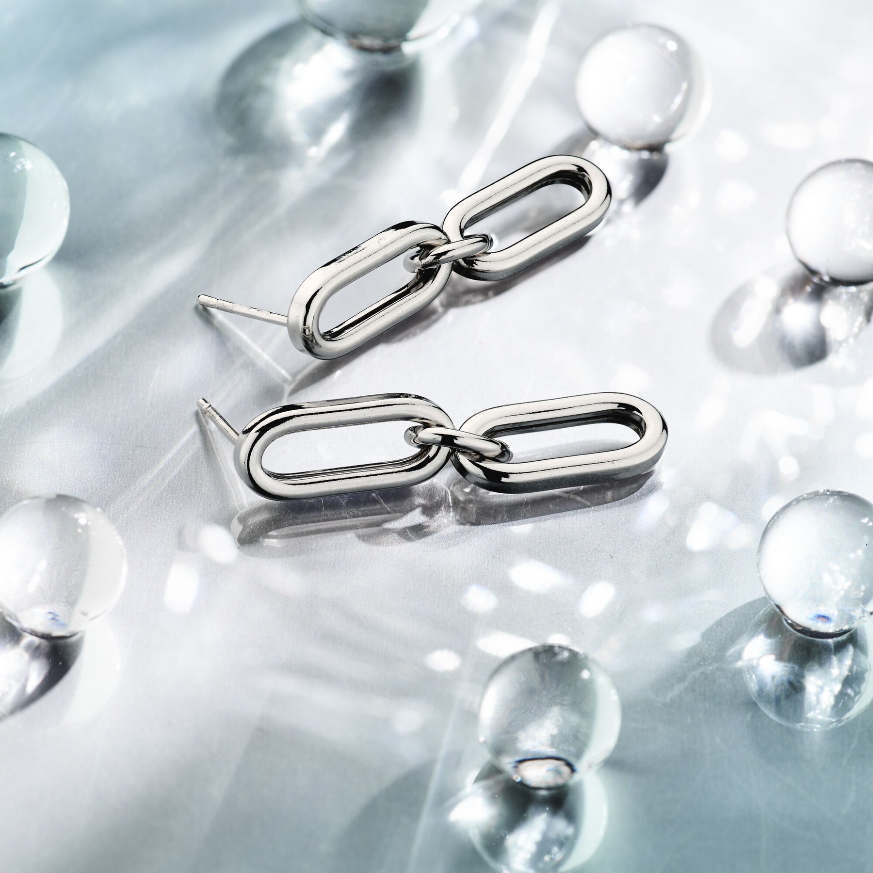 Gerhodineerd 925 zilveren paperclip oorhangers. De oorhangers hebben een totale hoogte van 39mm.
