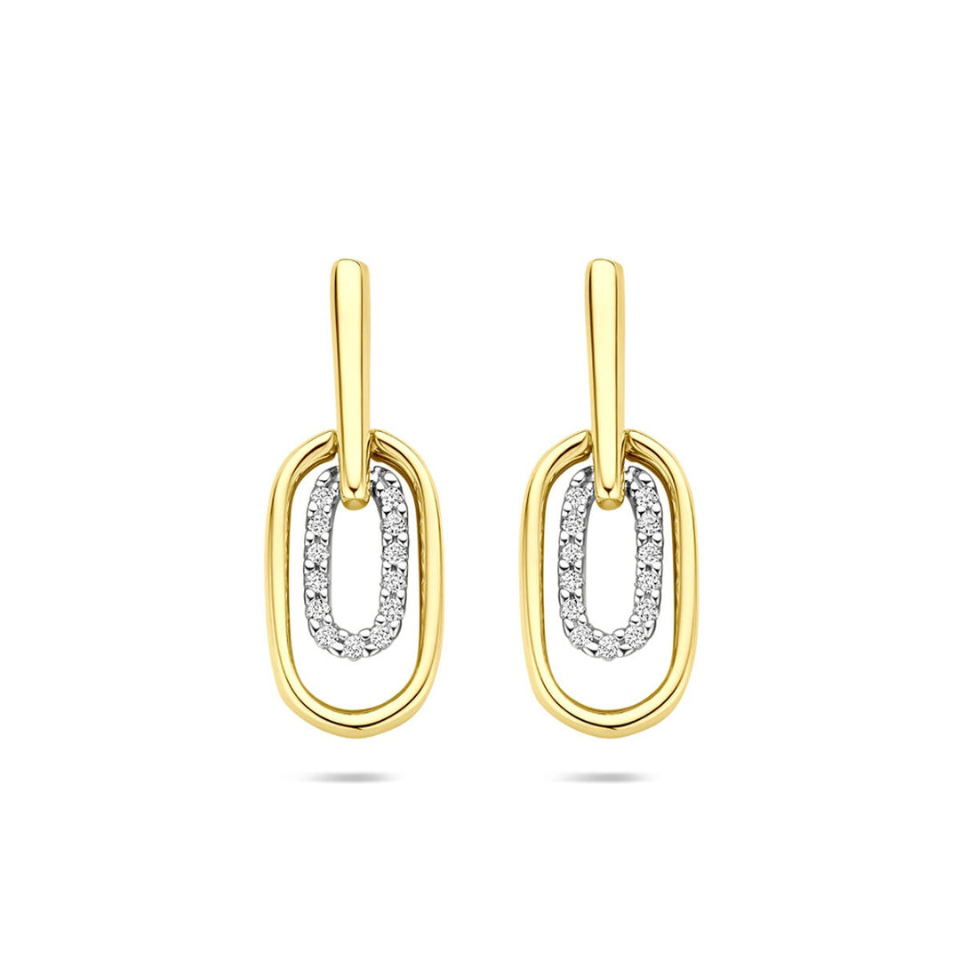oorhangers schakel diamant 0.11ct (2x 0.055ct) h si 14K bicolor goud geel/wit