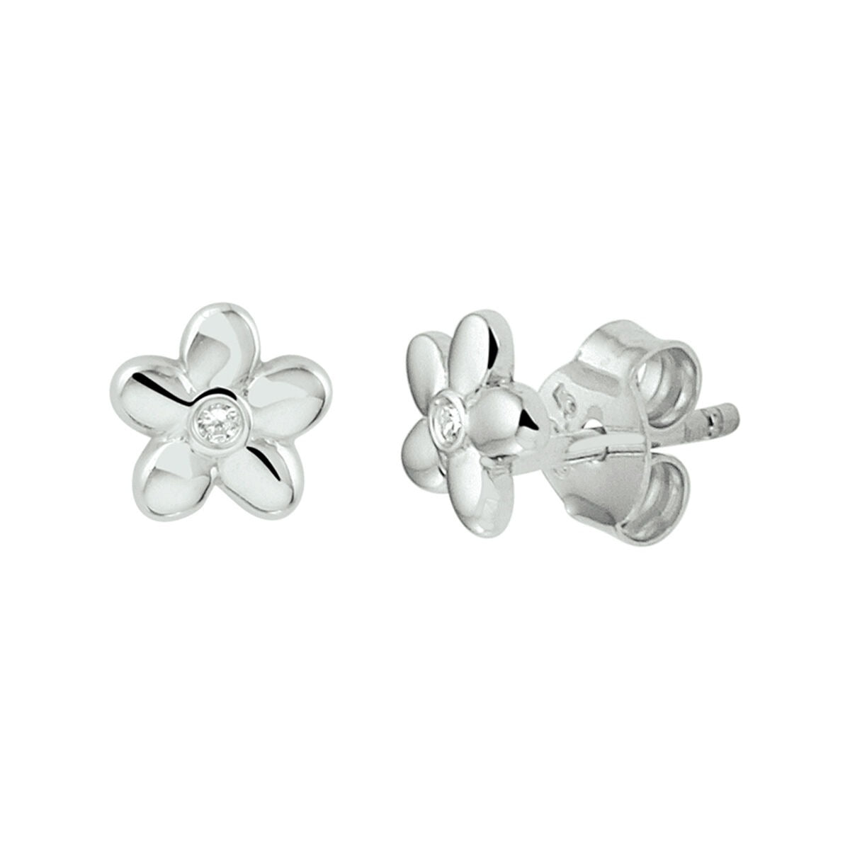 Zilveren oorknopjes bloem met transparante zirkonia – gerhodineerd