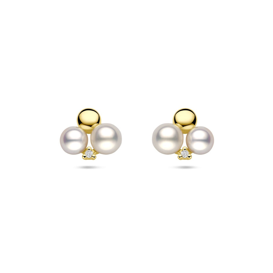 oorknoppen parel en diamant 0.02ct (2x 0.01ct) h p1 14K geelgoud
