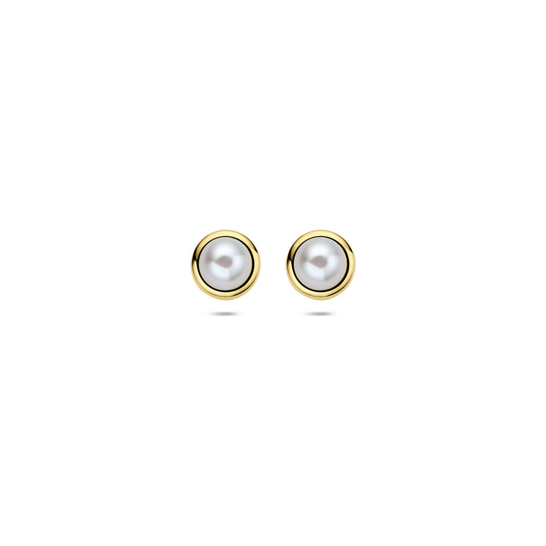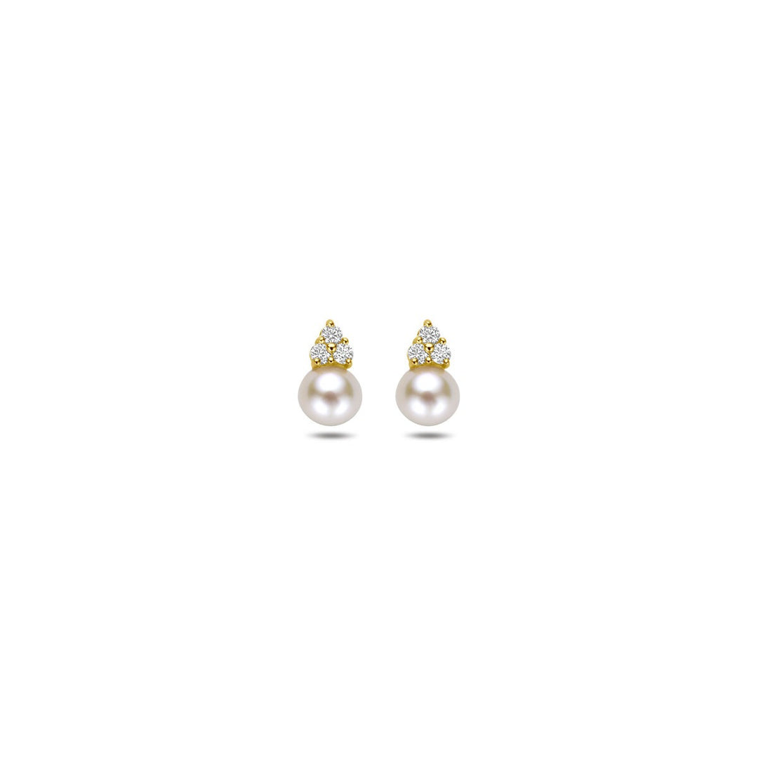 14k Geelgouden dames oorknoppen met parel en zirkonia