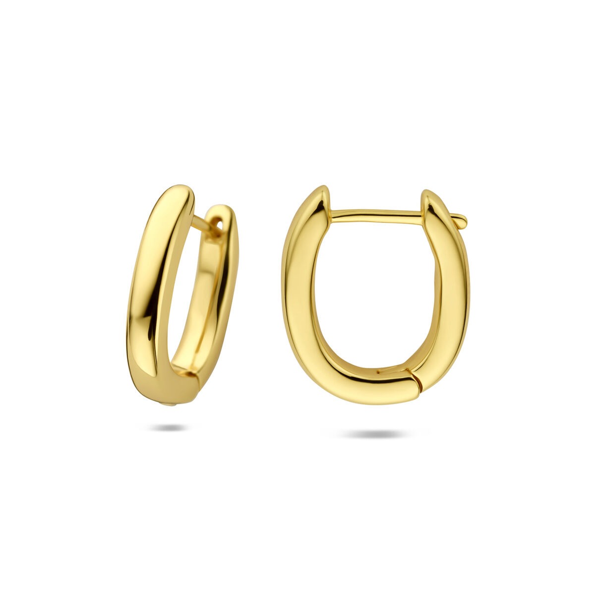De goudkleurige plating geeft de oorringen een luxe uitstraling, terwijl de gladde, afgeronde vorm zorgt voor een klassieke en stijlvolle look. Dankzij de praktische scharniersluiting zijn ze eenvoudig in gebruik en blijven ze comfortabel zitten, de hele dag door. Let op: bij intensief gebruik kan de plating slijten; hierop wordt geen garantie gegeven.