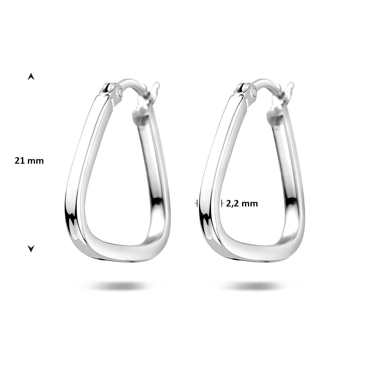 Deze stijlvolle zilveren oorringen zijn vervaardigd uit 925 zilver en afgewerkt met een gerhodineerde laag voor een extra heldere glans en duurzame bescherming tegen verkleuring en krassen. Met een diameter van 21 mm en een slanke breedte van 2,2 mm vormen deze oorringen een subtiel, maar elegant accent aan het oor.