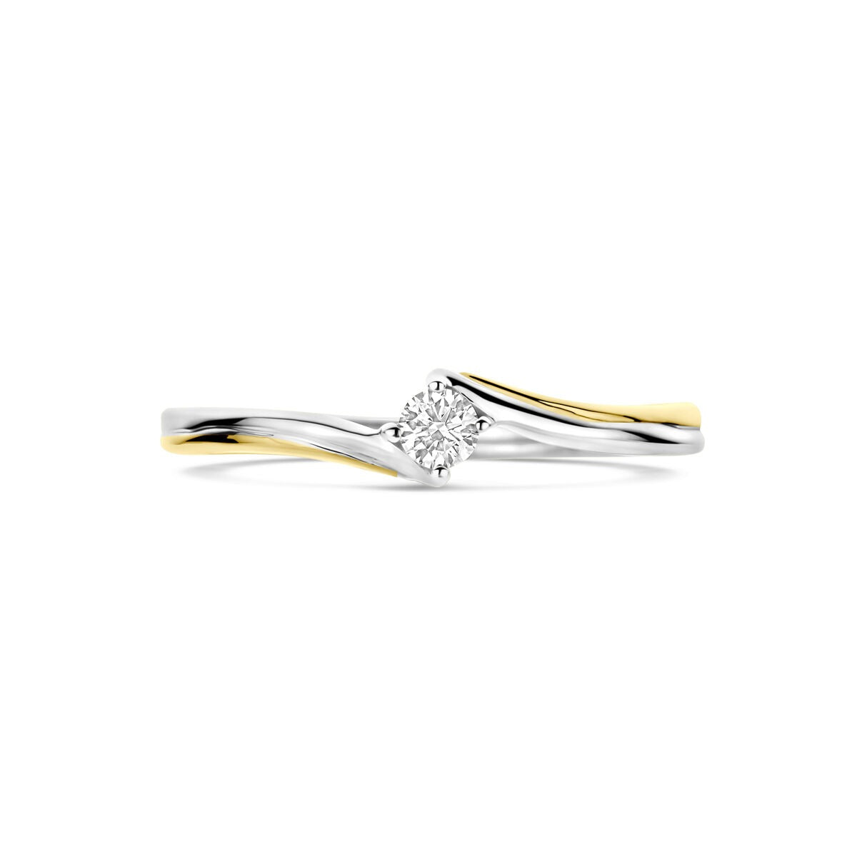 Bicolor gouden damesring met diamant – 14k geel- en witgoud