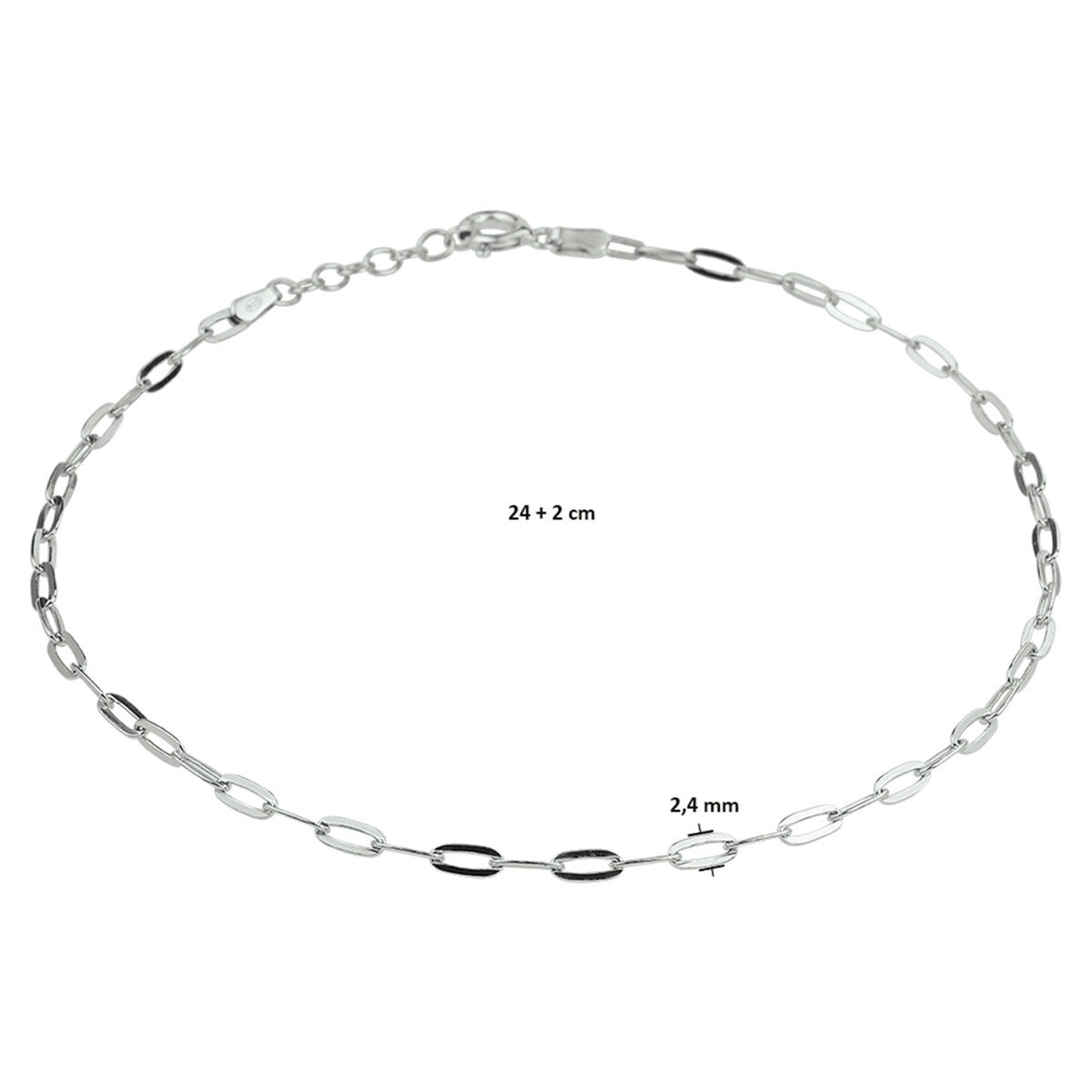 Zilveren enkelbandje met paperclip schakel – gerhodineerd 925 zilver