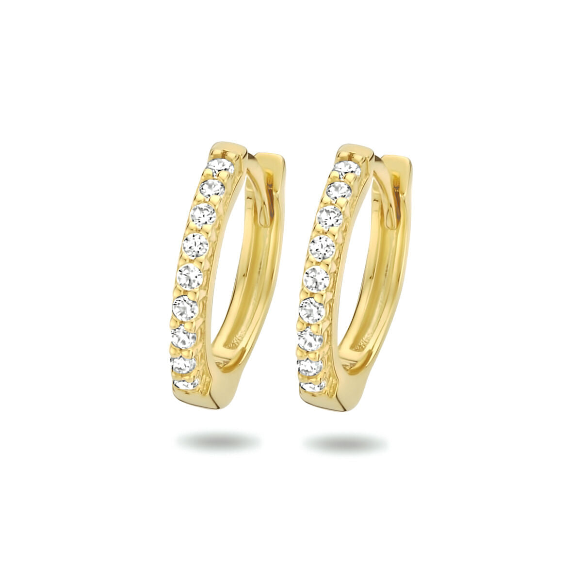 925 zilver vergulde klapoorringen uitgevoerd met een schitterende zirkonia rij. De oorringen hebben een diameter van 13mm en een dikte van 2mm. Geen garantie op plating.