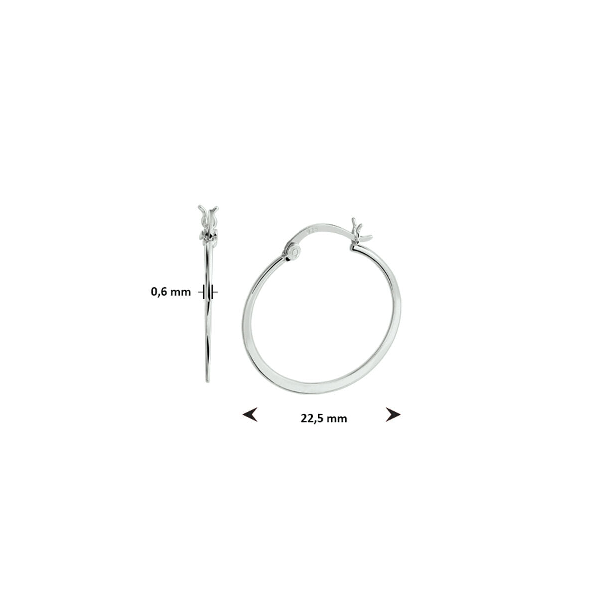 Gerhodineerd 925 zilveren oorringen uitgevoerd met een stevige scharnier sluiting. De oorringen hebben een afmeting van 22.5x0.6mm.