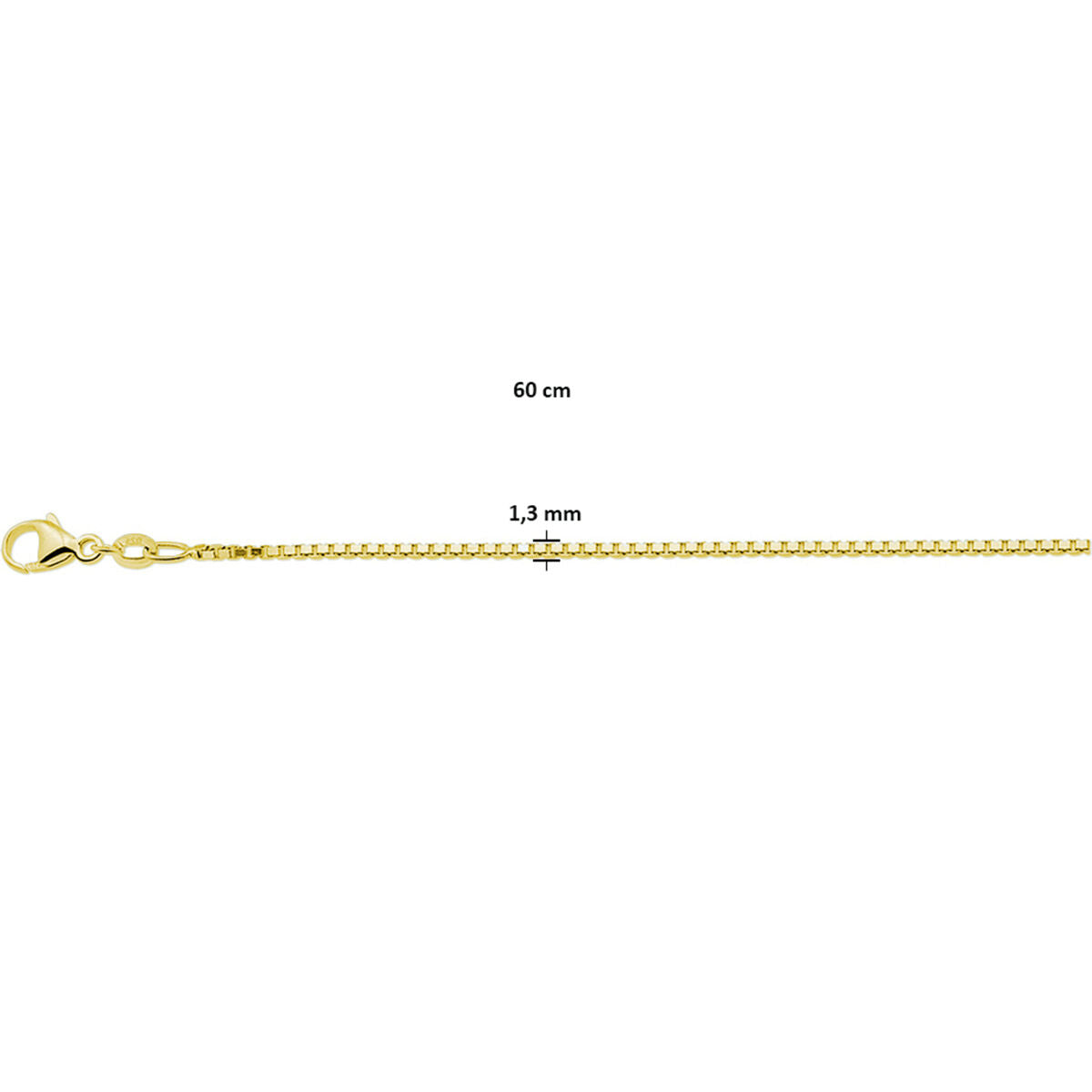 925 zilver verguld venetiaans collier met een schakelbreedte van 1.3mm. Het collier heeft een stevige karabijn sluiting. Geen garantie op plating.