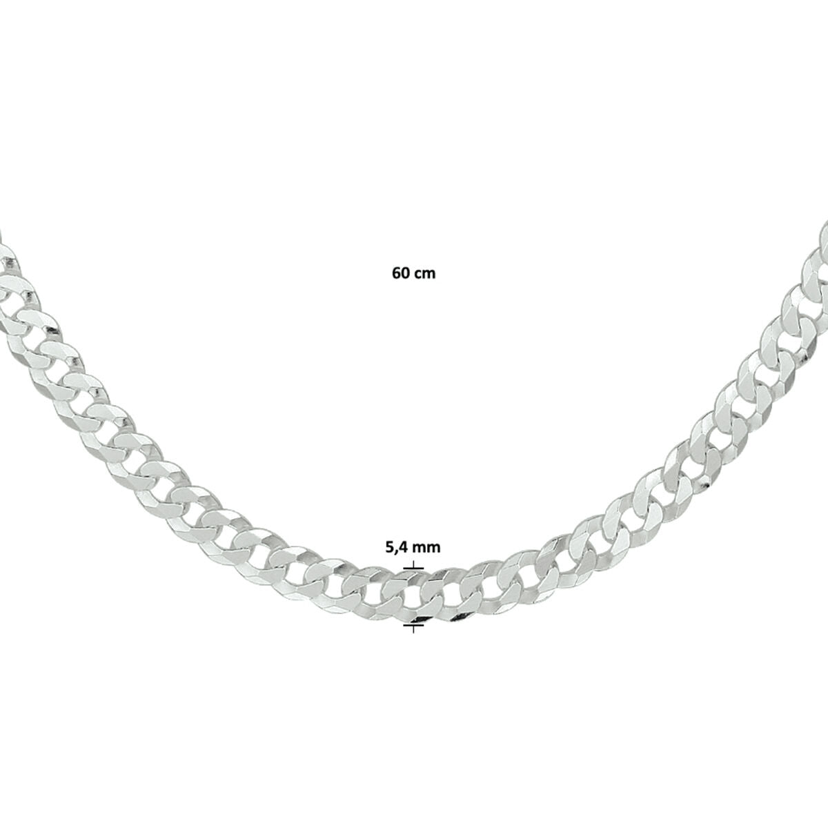 925 Zilveren gourmette lengte artikel met een schakelbreedte van 5.4mm. Het lengte artikel heeft een karabijn sluiting en een draaglengte van 50cm.